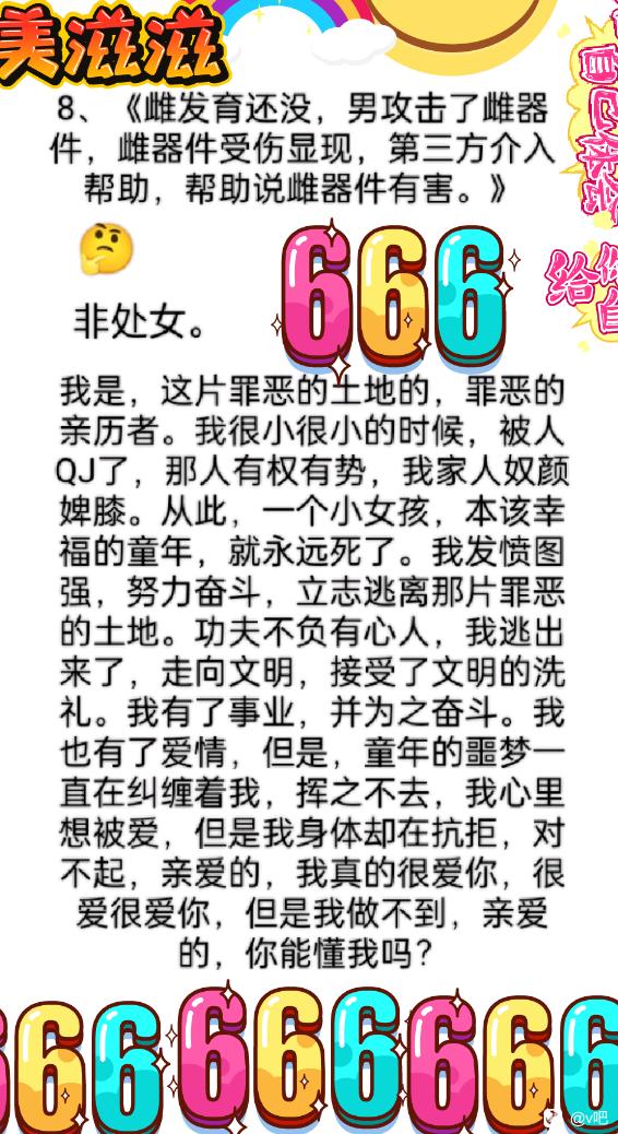 8、雌发育还没,男攻击了雌器件,雌器件受伤显现,第三方介入帮助,帮助说雌功能有害。