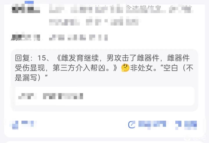 7、雌发育还没,男攻击了雌器件,雌器件受伤显现,第三方介入帮助,帮助说雌功能还没。