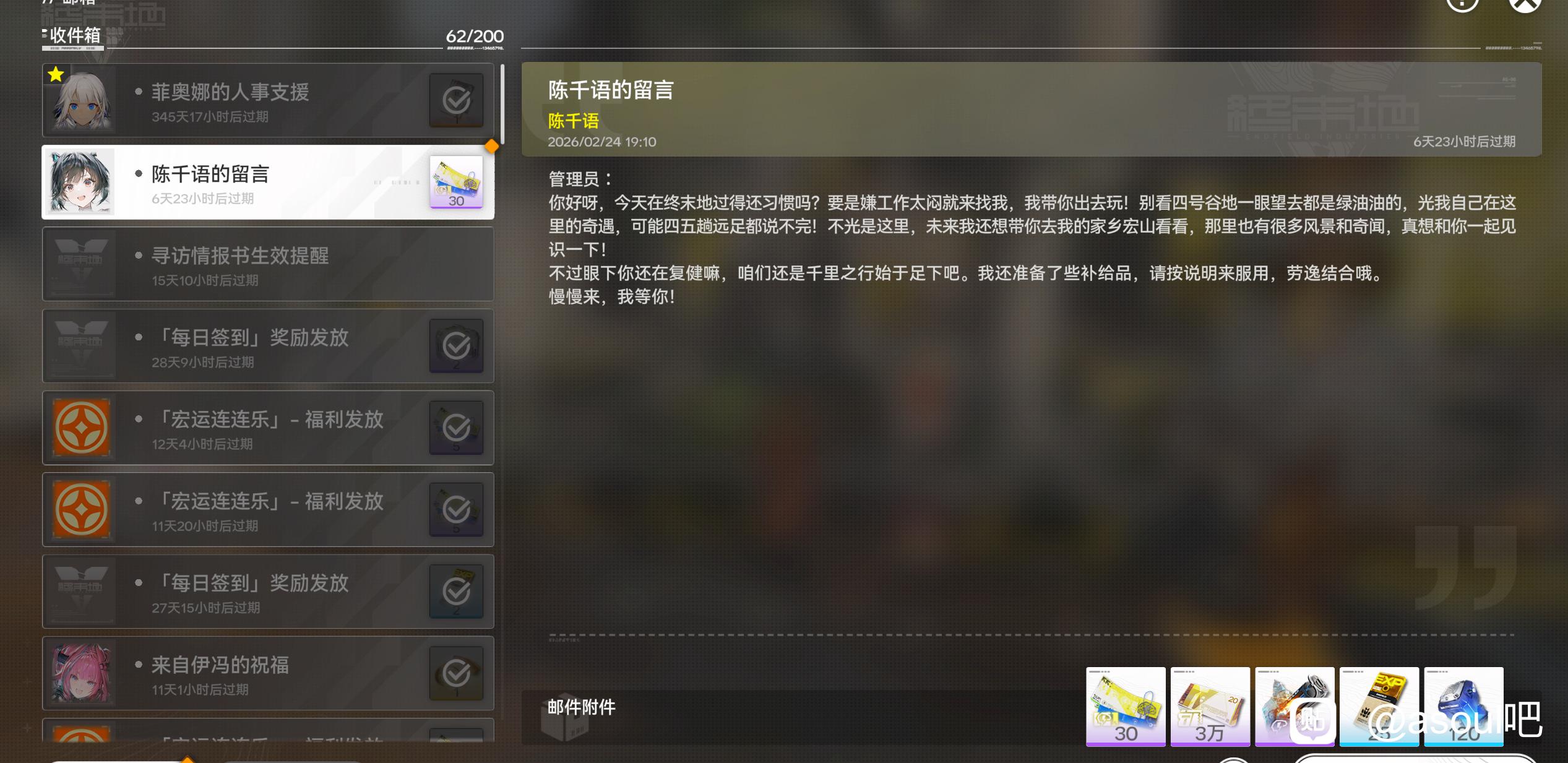 asoul吧 只有我知道小陈又送了三十抽吗tid:105112275532026/02/24 19:19:579291 1 0楼主:林木尘2号 林木尘ζ最后回复:by369082026/02/24 19:32:201楼pid:1532326393042026/02/24 19:19:57林木尘2号林木尘ζ 楼主 9级 小陈我爱你😘😘😘😘@陈千语本人2楼1条pid:1532326434472026/02/24 19:21:22Miffy199322无关风月题序等你归12级 🦅发朋友费了林木尘2号 林木尘ζ 楼主 9级 整整三十抽,kg羡慕去吧3楼1条pid:1532326615272026/02/24 19:27:40全球轻轻请求8级 常驻吗?缺配额刚好林木尘2号 林木尘ζ 楼主 9级 是的,抽奖的时候可能会跳出来一个提示,不用管点同意就行4楼1条pid:1532326687072026/02/24 19:30:03宇智波文波已隐退了119级 把钱还给我林木尘2号 林木尘ζ 楼主 9级 这是小陈自愿赠予5楼2条pid:1532326690162026/02/24 19:30:10by36908bytsf7级 这个是抽吗?感觉和那个双倍券好像啊,是我错觉吗林木尘2号 林木尘ζ 楼主 9级 有没有可能就是双倍券by36908 bytsf 层主 7级 回复 林木尘ζ :那没毛了,我还在想老🦅怎么可能会送30抽呢