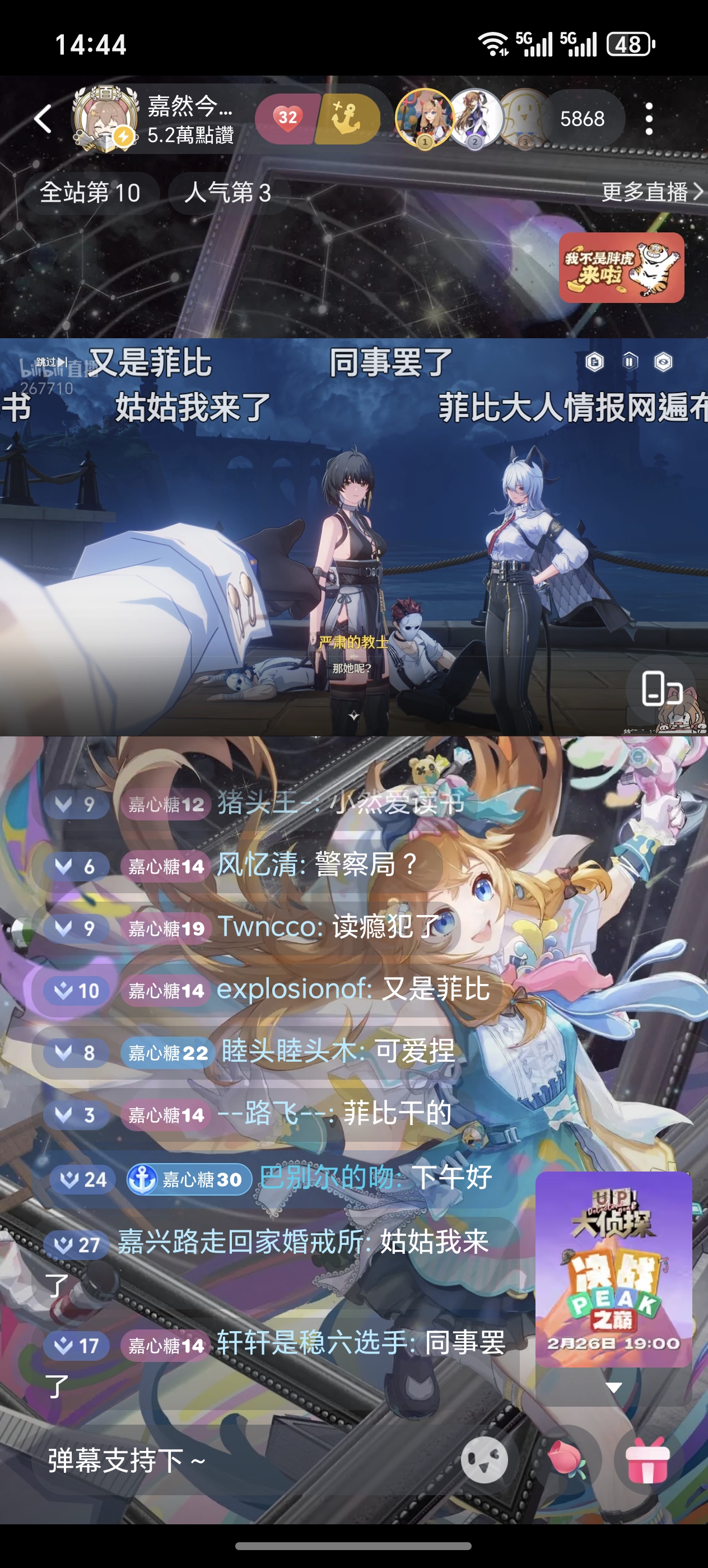 嘉然播鸣潮同接居然不如贝拉播肿么滴???