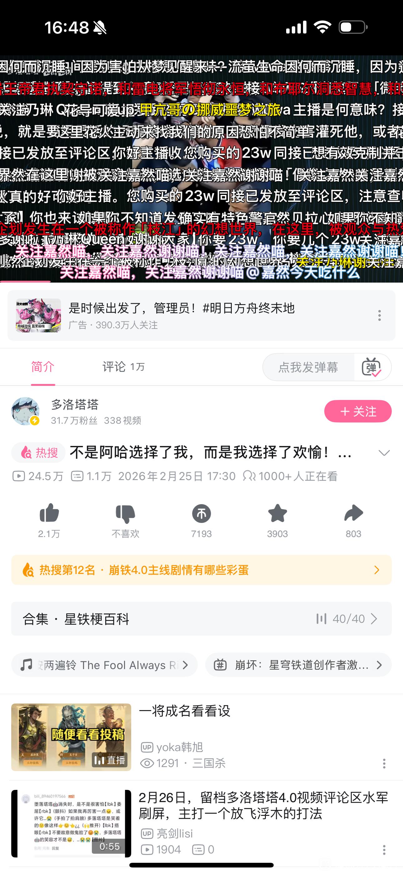 这个打法太古早了,以至于我进去看的时候这些都屏蔽完了,事实证明平台进步也是有好处的,之前开的各种屏蔽无效弹幕直接就无视了独轮车