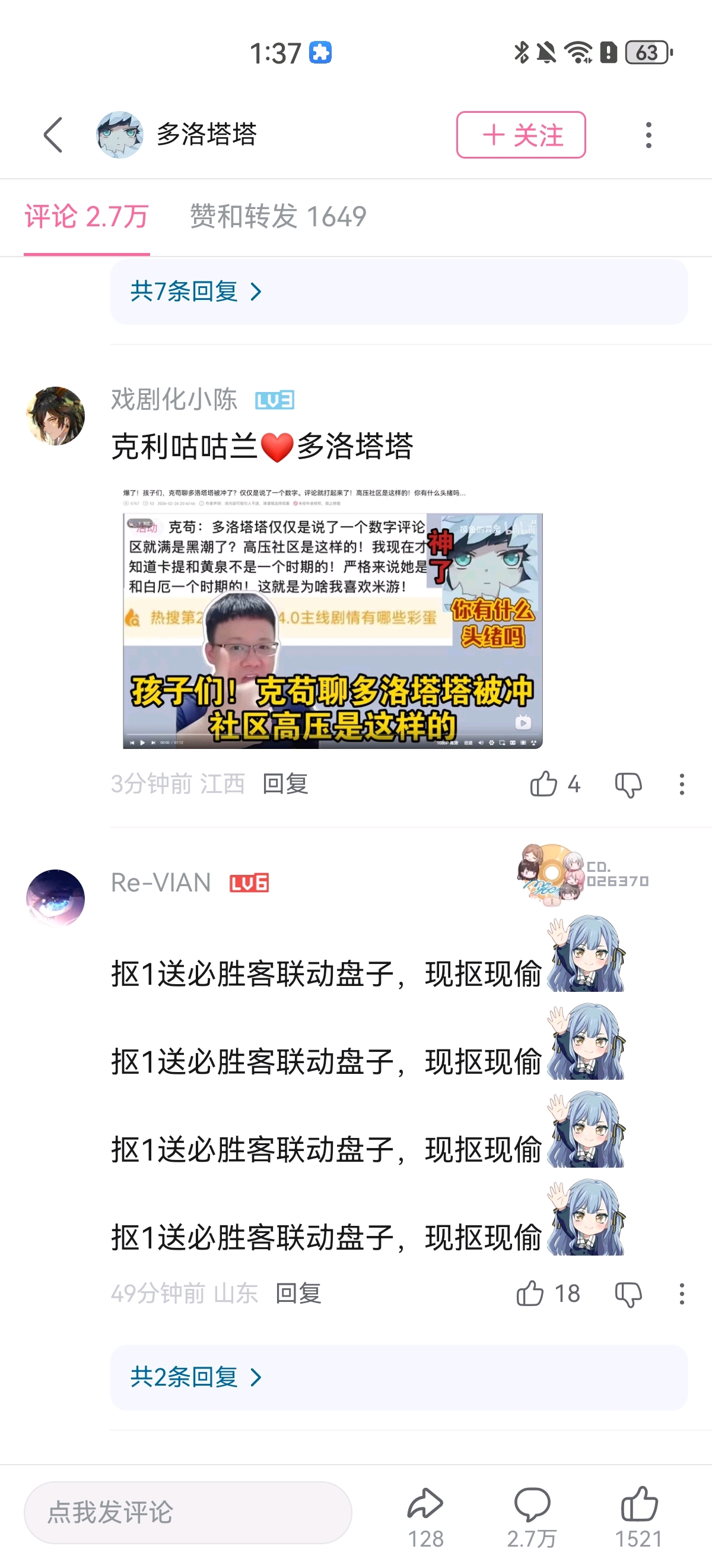9楼pid:1532414109312026/02/27 10:05:20泠风吹纸鸢7级 塔出我真是看错你了,一直以为你是站在老米站在我们米家粉丝这边的,没想到一个崩铁剧情解析的视频里居然夹带kg主播的私货给kg引流,你不知道kg有多可恶么?整天造谣昔涟是🐔,你居然还助纣为虐为虎作伥,看看现在评论区,全是你引流来的kg主播的咲子,把我们正常的社区环境都毁了!