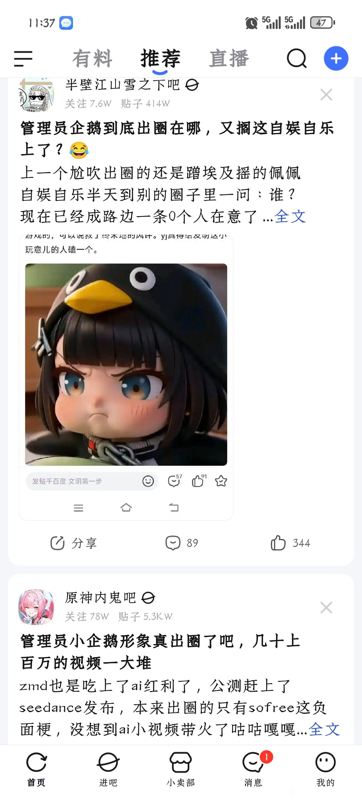 管理员小企鹅形象真出圈了吧,几十上 百万的视频一大堆