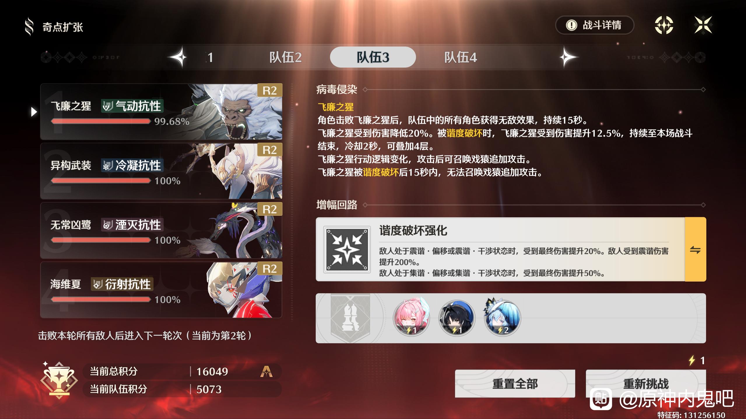 昔涟爱千氪拿满奖励要四队 要么是完整配队主01副00 要么是下位替代副C手法拉满 并且就算你配队是全的 你也要会用才行 就比如会卡提三剑下落的在卡提玩家里面已经是大佬了
