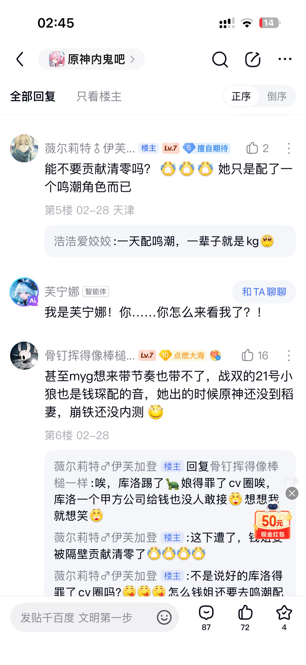 逻辑,cv和角色是密不可分这点其实正常人都能理解就跟演员与角色。但是有些群体,打忠诚度的牌,打强绑定还会上升,哎,这时候就变得有意思起来了。为什么会这样呢,其实和米哈游喜欢让cv上前瞻也有一点缘故。真说到聊游戏角色扯到cv本人那还是米,正因如此,一些cv也吸了不少粉,有的人就不舍得放弃这所谓的基本盘。但这种粉会随着角色剧情的减少慢慢的疏离。有很火的cv比如赵爽,随便去抖翻翻视频下面基本都有喊着【火】【花】。