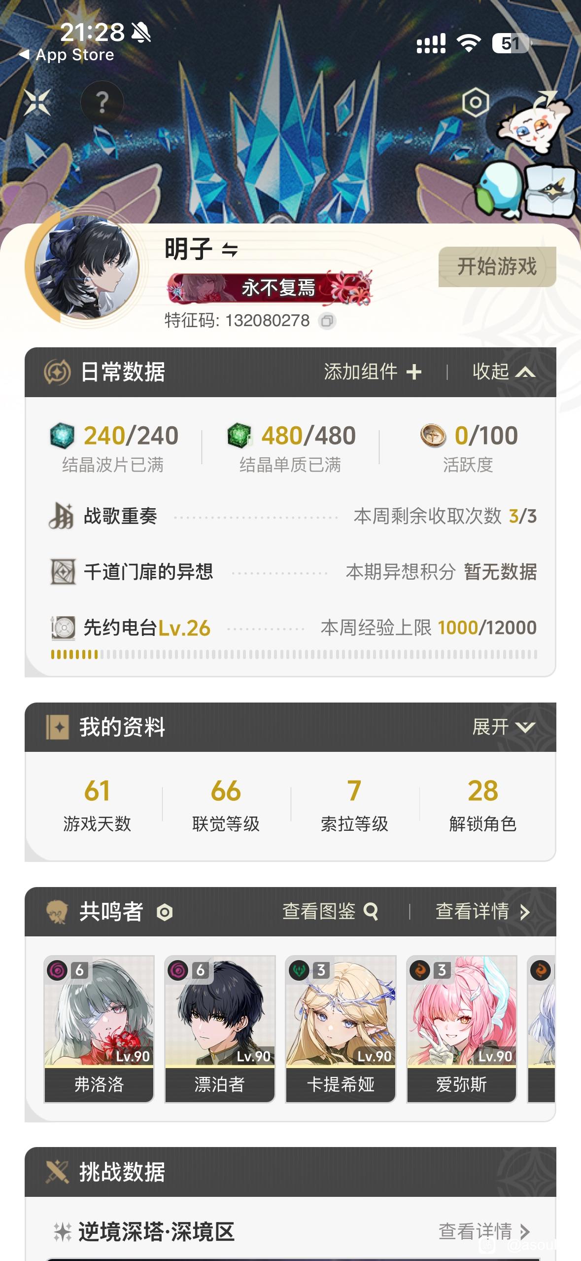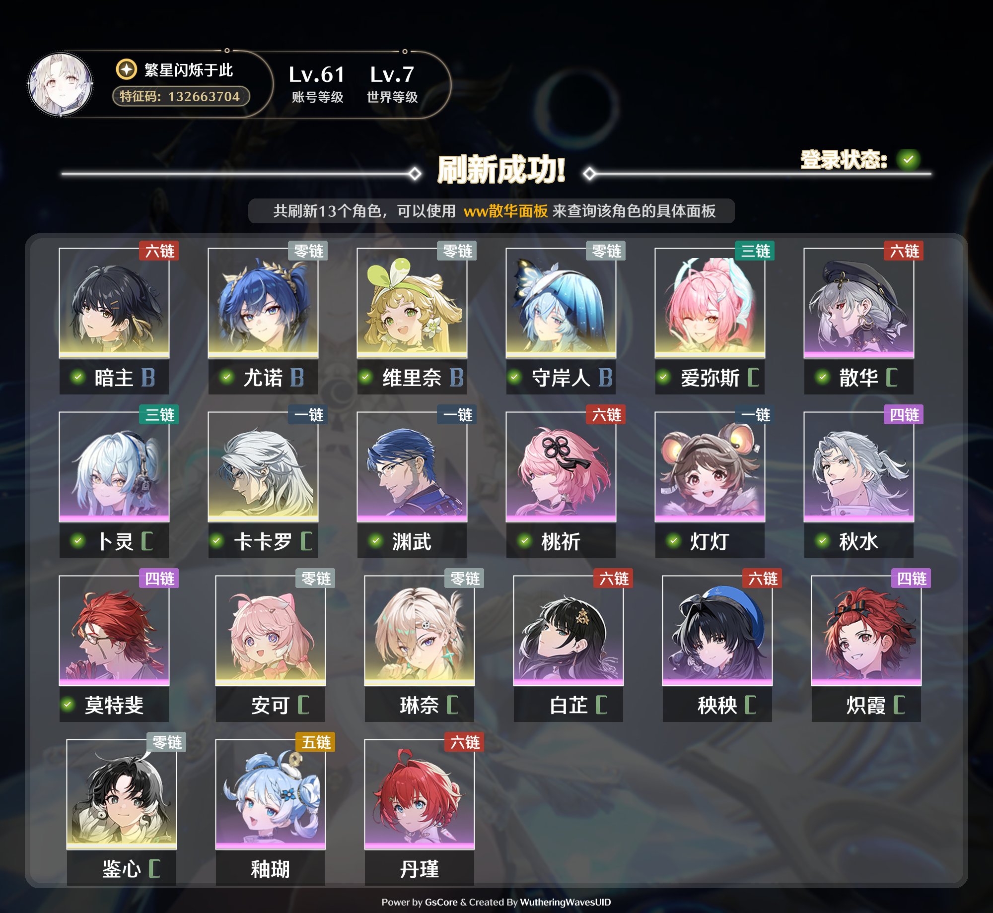 想着我是个开服老登,上号帮打高难这个容易出问题就放弃了,但帮各位看看号是绝对没问题的,理解角色强度这块能超过绝大部分玩家,不过强度榜我就不给了,有的角色太吃手法,这也是当前很多强度榜褒贬不一的原因