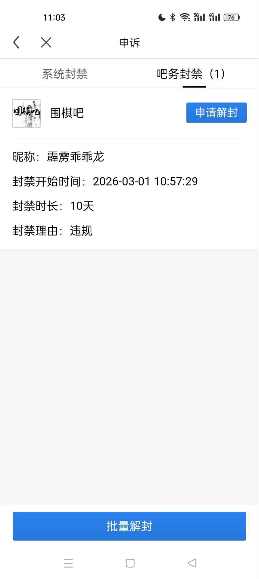 补充围棋吧吧主胡乱封禁滥用职权的证据: