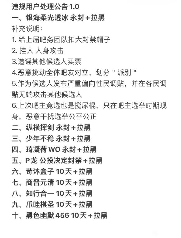 1楼pid:1532489622482026/03/01 12:08:48苛沐盒子 楼主 4级 吧主ID:fqysq123围棋吧刚刚进行完吧主选举,1号候选人在获得吧主权限后并在吧主公示期间滥用吧主权限大规模封禁拉黑正常参与竞选的合法候选人和众多正常参与投票的吧友,报复打击不同意见者,违反竞选规则和吧主协议,不具备吧主资格!