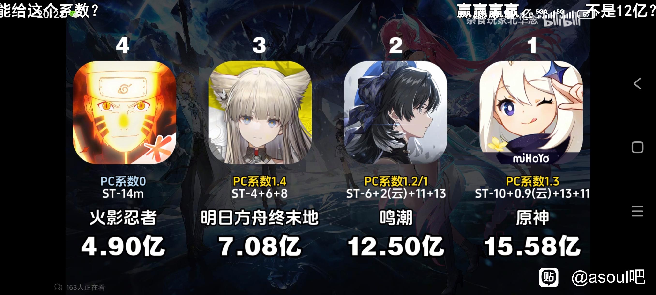 我发个提问 稷廷研究员21号回复:以前最大的流水区up叫“国产二次元手游观察”,评论区算是理中客自由搏击,同样的系数他能给原神1.2到1.8,给鸣潮0.5到0.8,在鸣潮2.0流水爆炸的时候跑路了,估计也编不下去