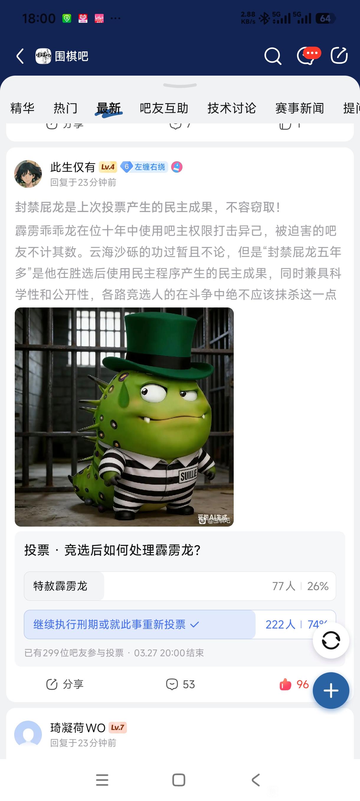 1楼pid:1532535686172026/03/02 17:51:13fly黄赤交角此生仅有 楼主 3级 主动要求吧务展开投票放逐自己,真被放逐了又不服,再怎么浑水摸鱼也改变不了你们在围棋吧人人喊打,只能跟一群谣棍挤在棋特吧里豆蒸