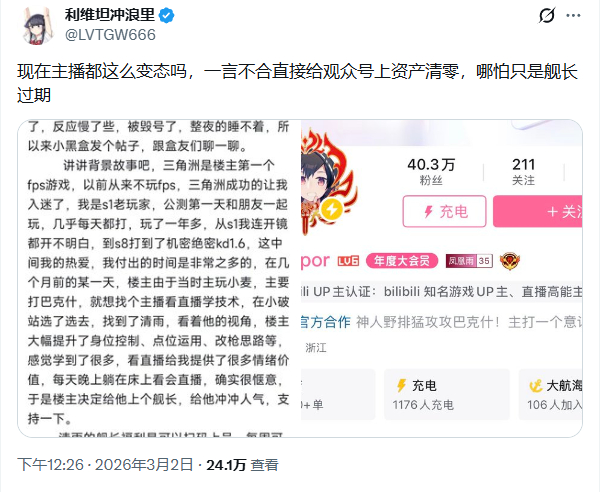 干了不认错,现在看起来像只要热度,直播毁前不久还是舰长的号直接断了自己一口粮