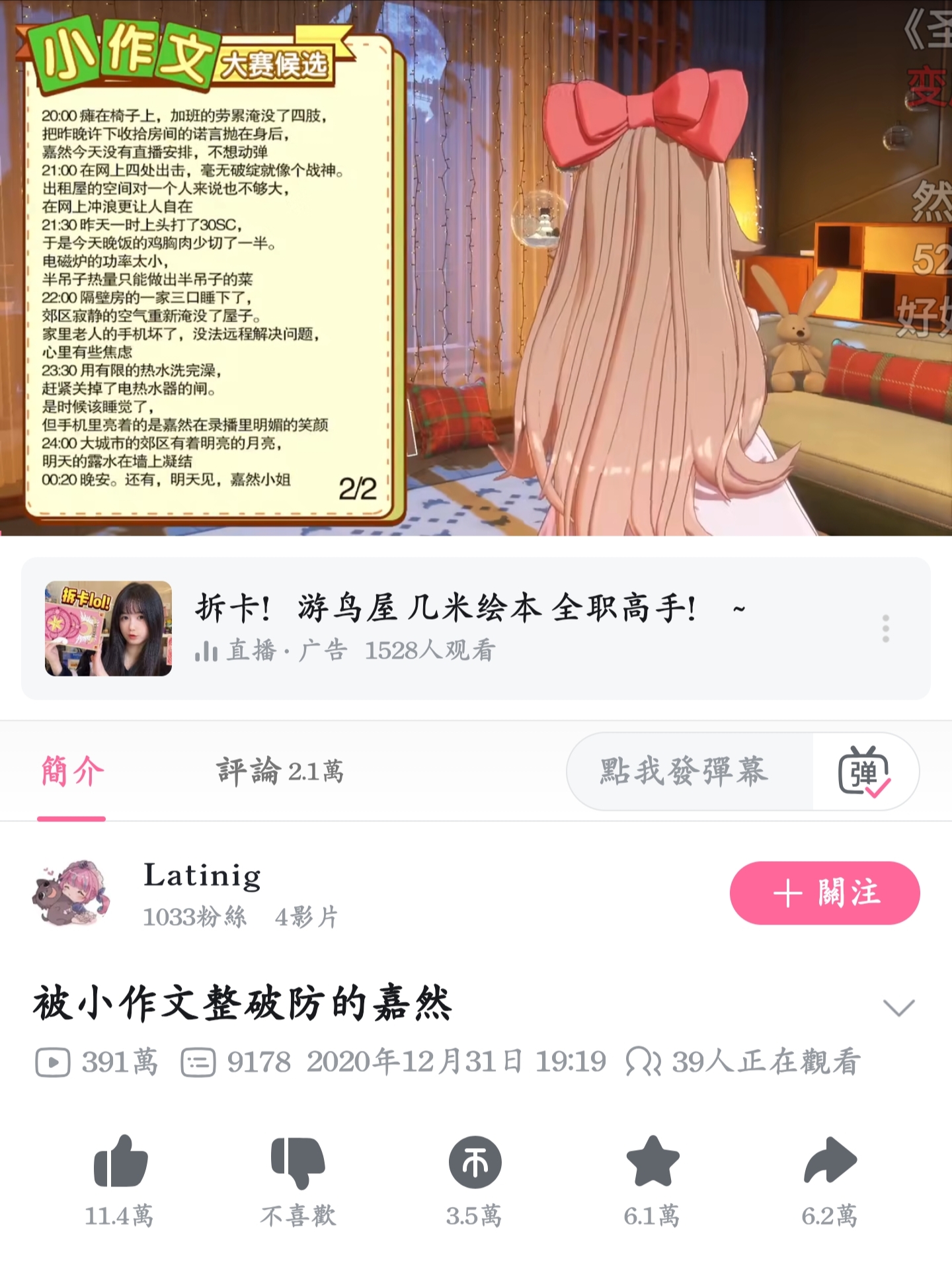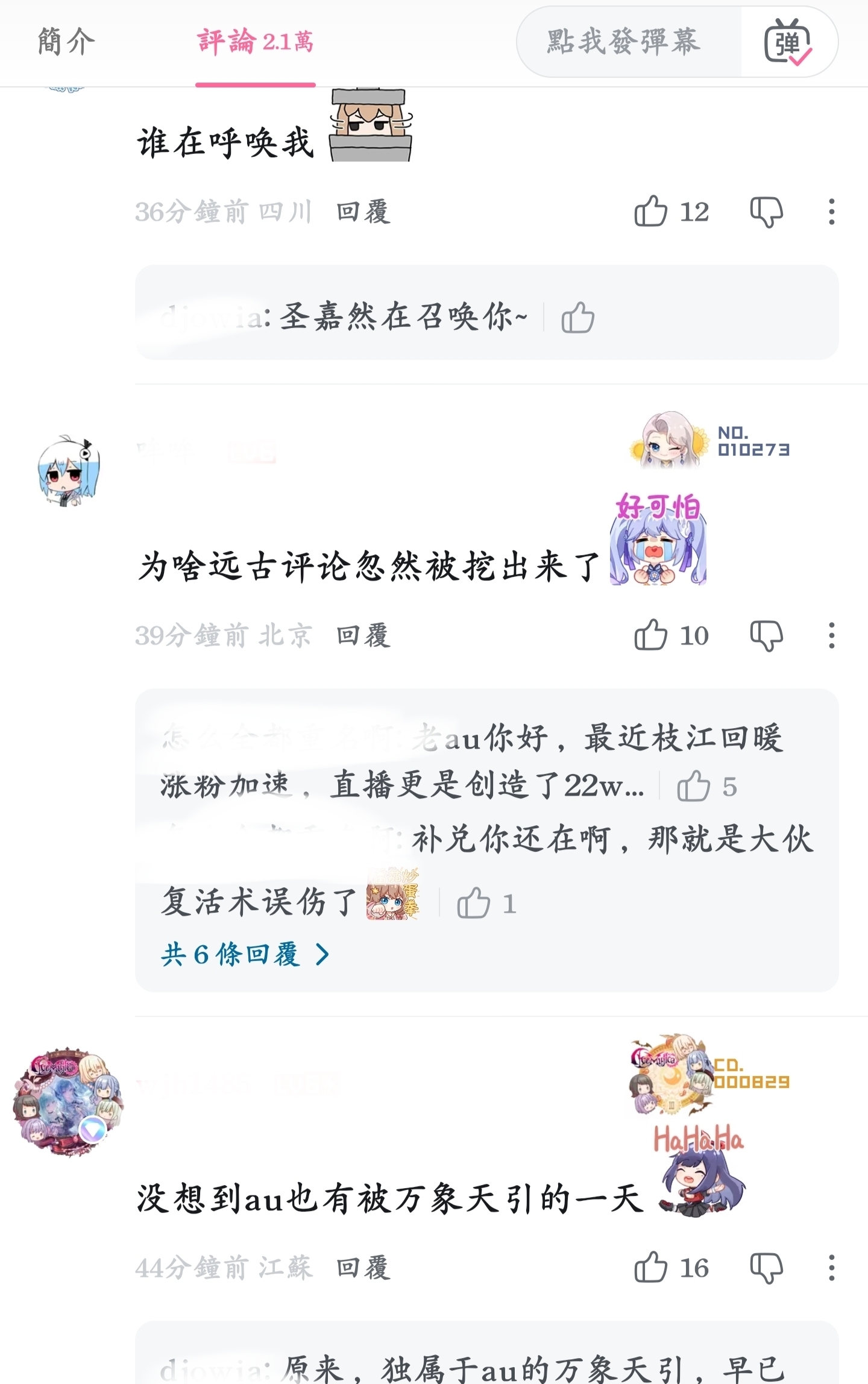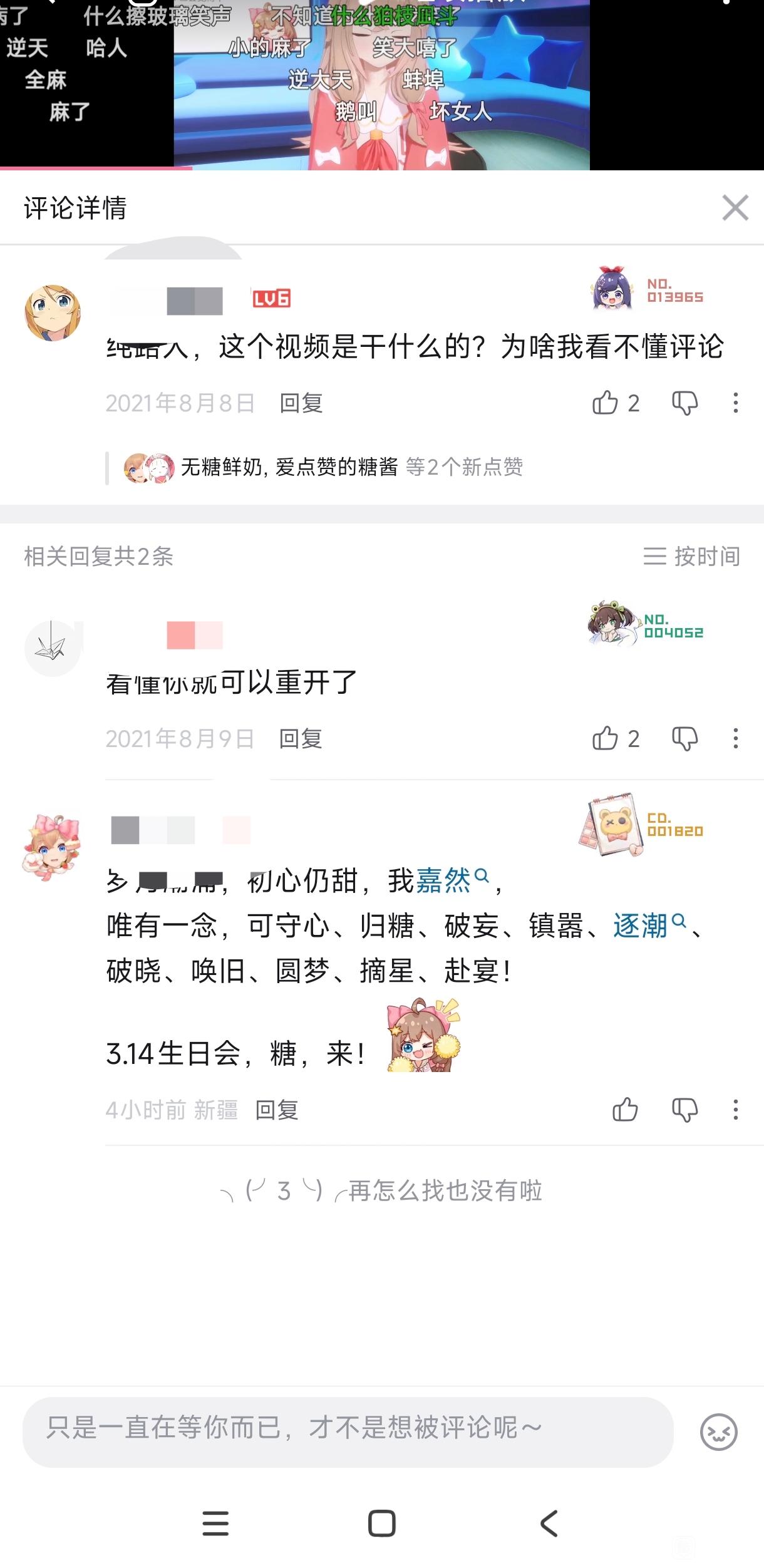 我以前在嘉然视频下发的评论突然多了一堆点赞的,给我吓哭了T﹏T