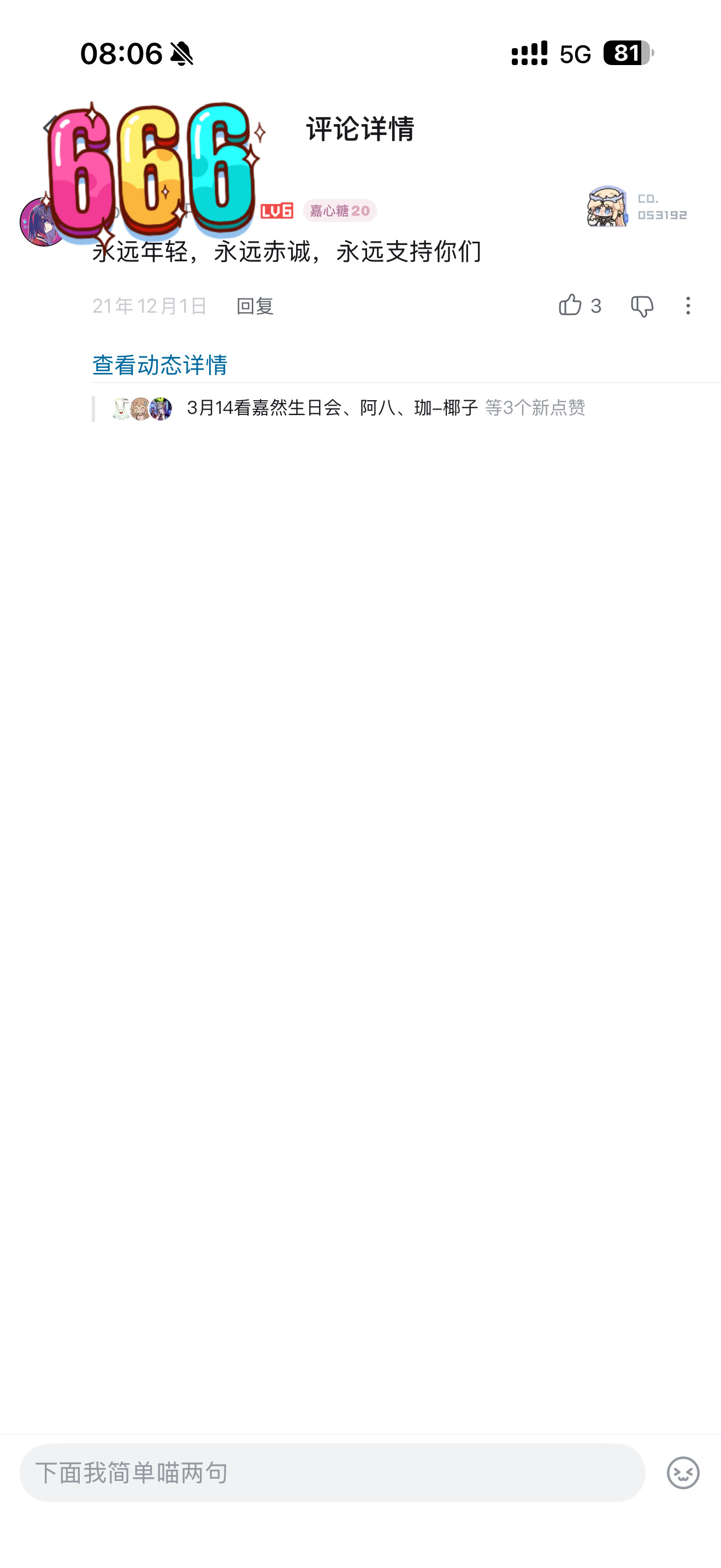 3楼pid:1532622435032026/03/05 08:37:03幽梦客的今汐今汐受不鸟6级 ✋✋✋我是来提醒您枝江最甜甜甜的小草莓🍓🍓🍓嘉然Diana的生日会直播🍰🍰🍰将在3月14日举办,👋👋👋希望您能够在3月14日晚八点带着轻松快乐的心情参加A-SOUL嘉然生日会的直播🥰提前感谢您的到来