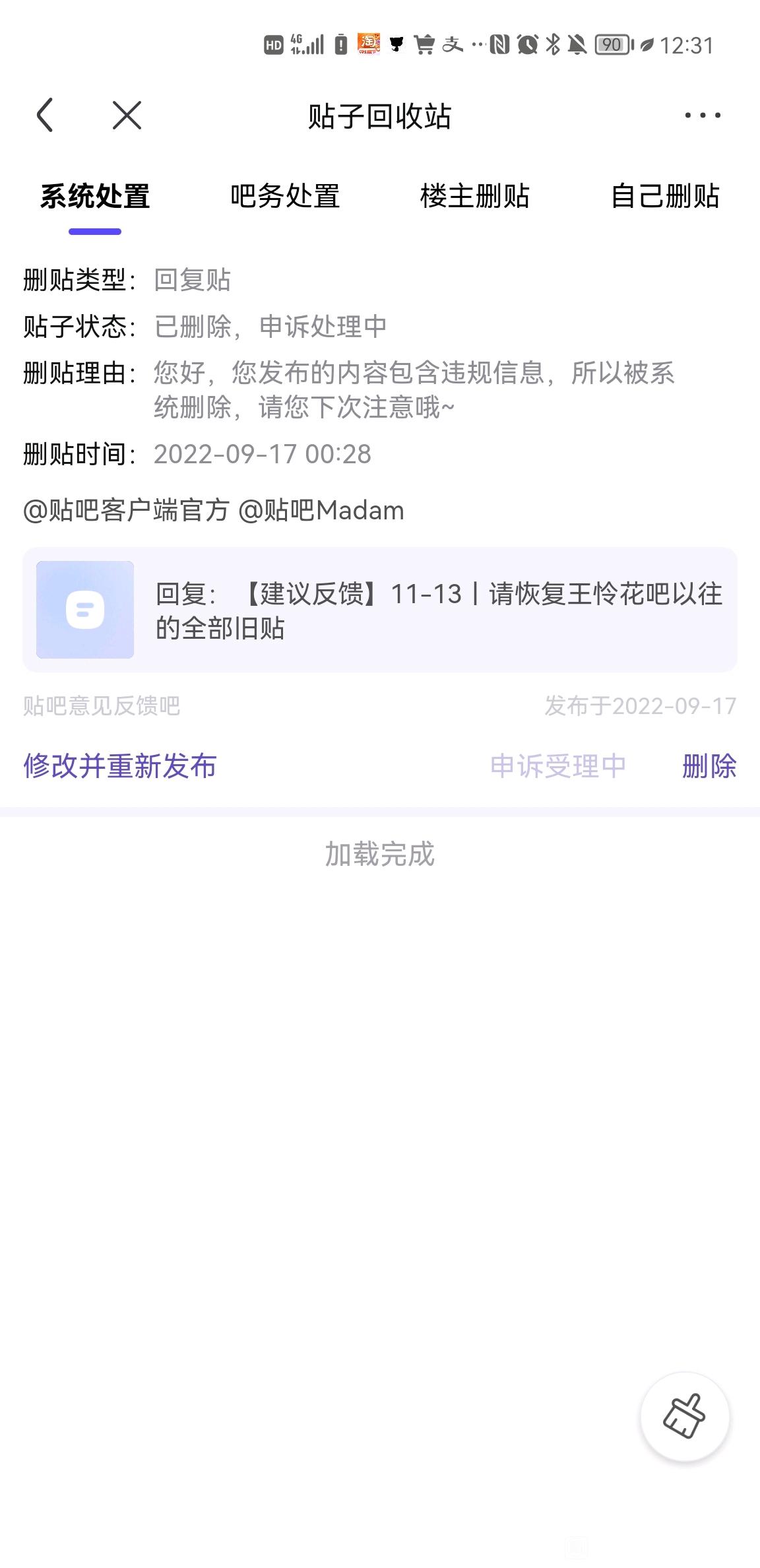 百度贴吧5月时整顿文学类贴吧,【王怜花吧】重新开放后,之前的帖子至今不予显示,多次申诉亦得不到解决。