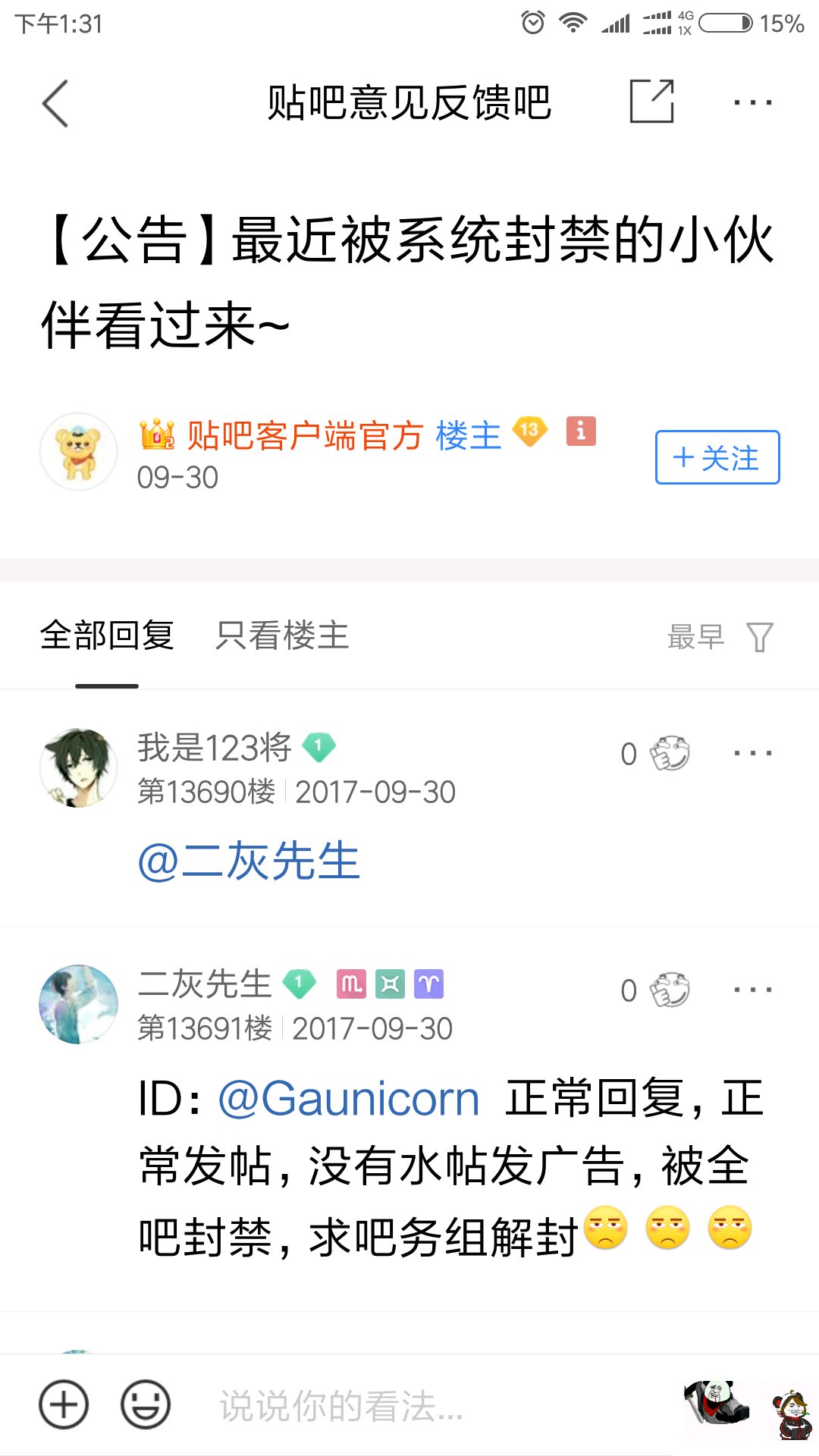 我想知道解封一天的大单吧封禁怎么解封完变成了全吧永久封禁?这是为啥啊!也很少发帖发言的!