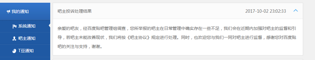 一次两次也好,我已经等了几个月了,都是这样的回复,那个吧主至少在我写申请大吧期间没有登录发言,没有签到(从贴吧牛人榜看到他的经验一直是那个数,没有变),没有管理贴吧。按照吧主协议,官方早就应该有所动作,我想知道,我接下来还能去哪里投诉。