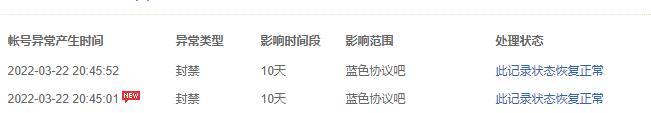 传奇吧内存在大量的恶意刷帖行为,发QQ群信息,违反吧主规定的条例,但是并没有被封,我发了一次QQ群,然后被封了10天,我认了,但是搞笑的是我封禁期间被封第二次我就不明白,封禁期间还能发帖跟帖还是咋地?还是因为我举报了某些人恶意刷帖,导致被报复?我不得而知,我希望能给我一个合理的解释!!!而且我举报别人恶意刷帖,居然回复说经查无违规行为,我就呵呵了。。。