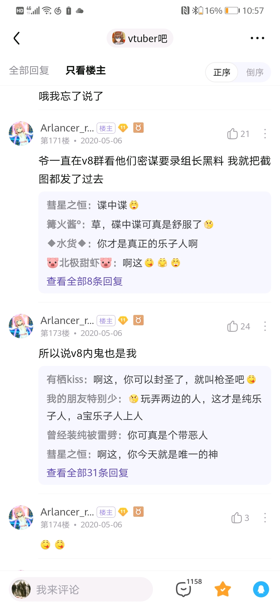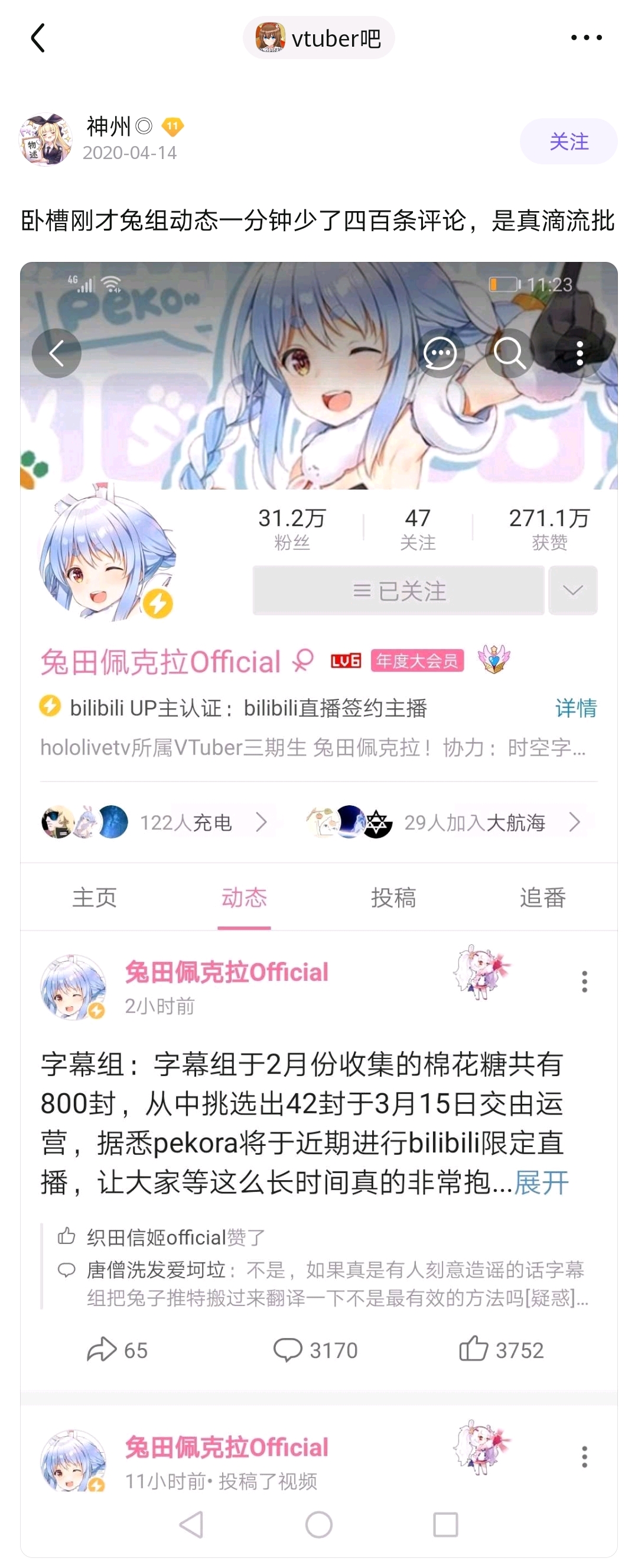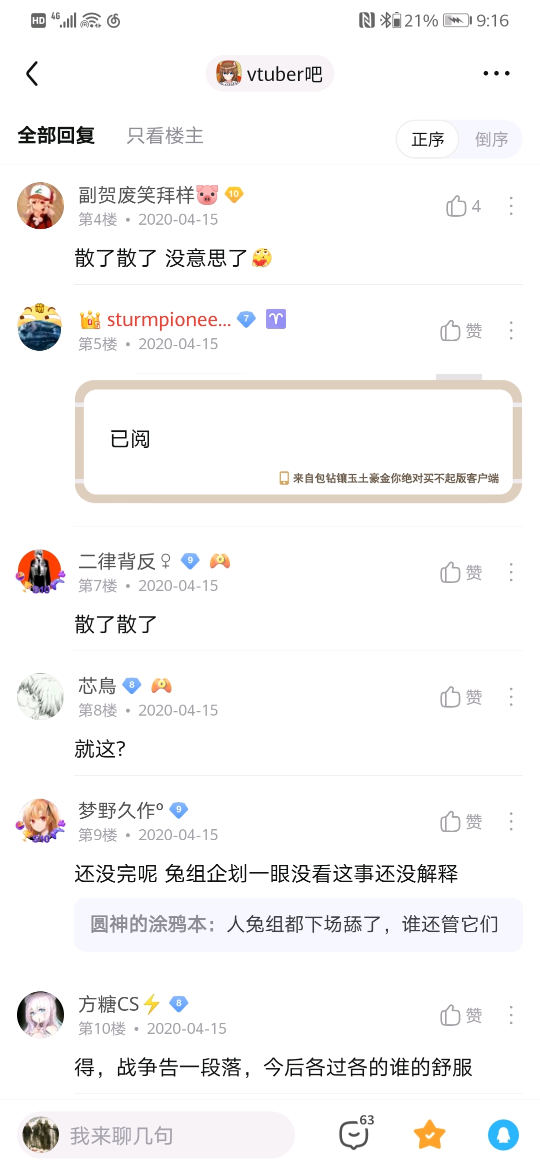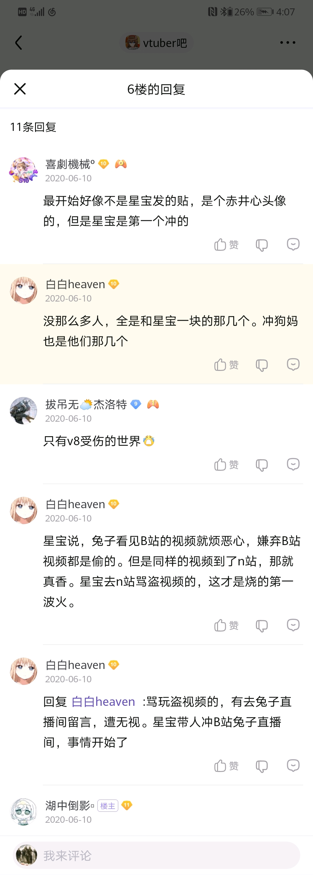 大概天狗楼落成没多久后开始看的nga和Vtuber吧。Vtuber吧当时给我的感觉就是比较冷清,尝试发了个贴也莫名其妙被吧务删了,而且贴吧的这个楼层系统又比nga爬楼麻烦。直到爆炸前夕大概是1月才开始逐渐看Vtuber吧。