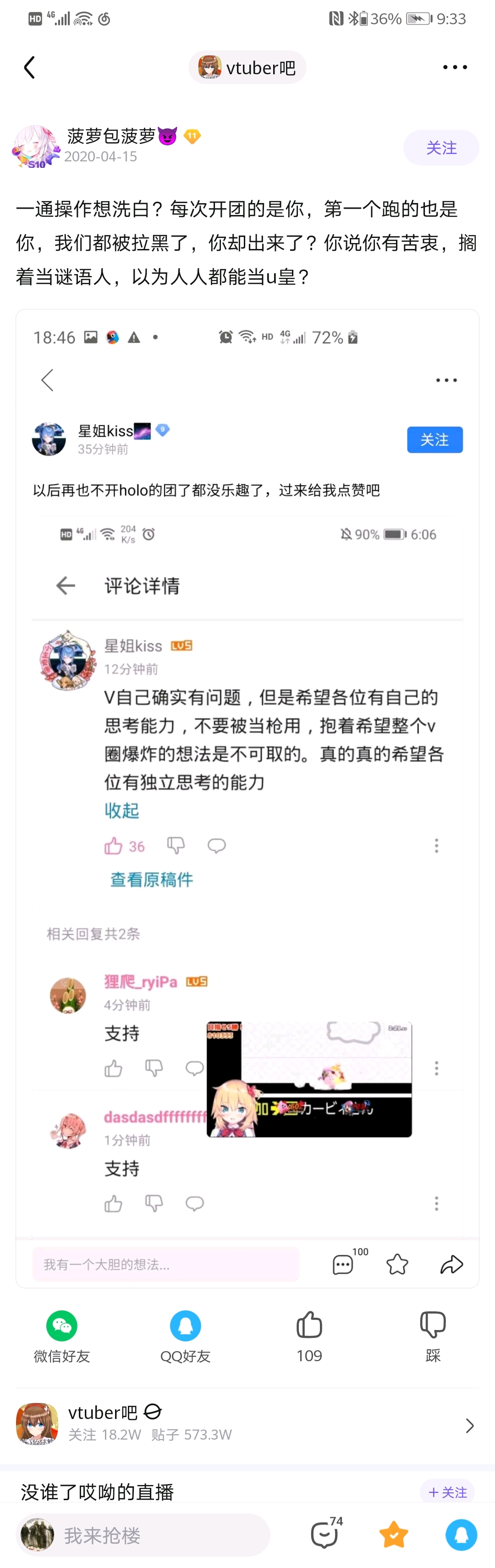 还有野兔子同好会说有技术大手子,要打击黑子;疑似星宝qq号曾在官号下被刷屏。