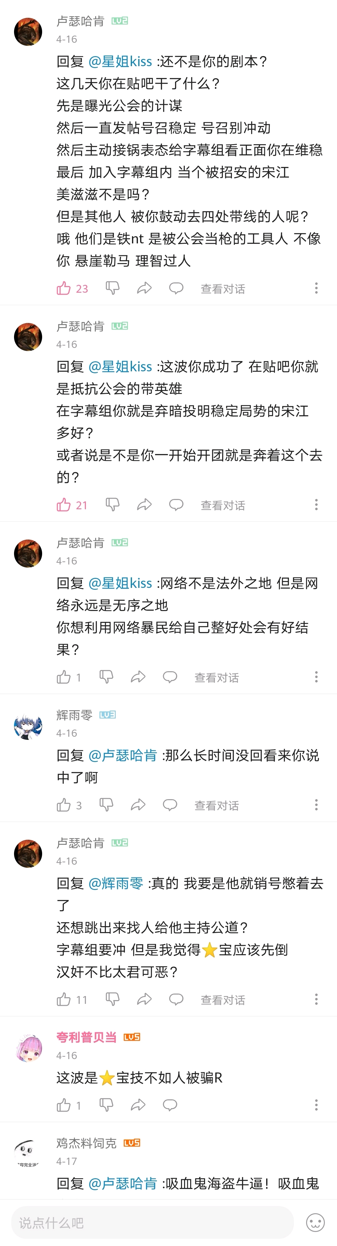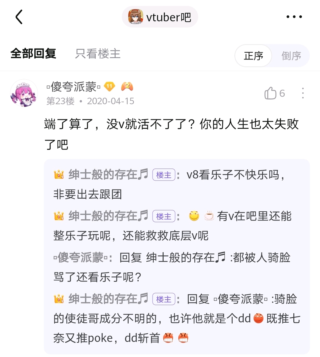 再补充一个题外话,自此次事件后,吧友们由于长期受到使徒的熏陶,居然对使徒产生了耐受性,百毒不侵,之后还反过来对无吧主状态的府吧进行使徒攻击😅致使府吧一时间人流量大减,这当然是后话了