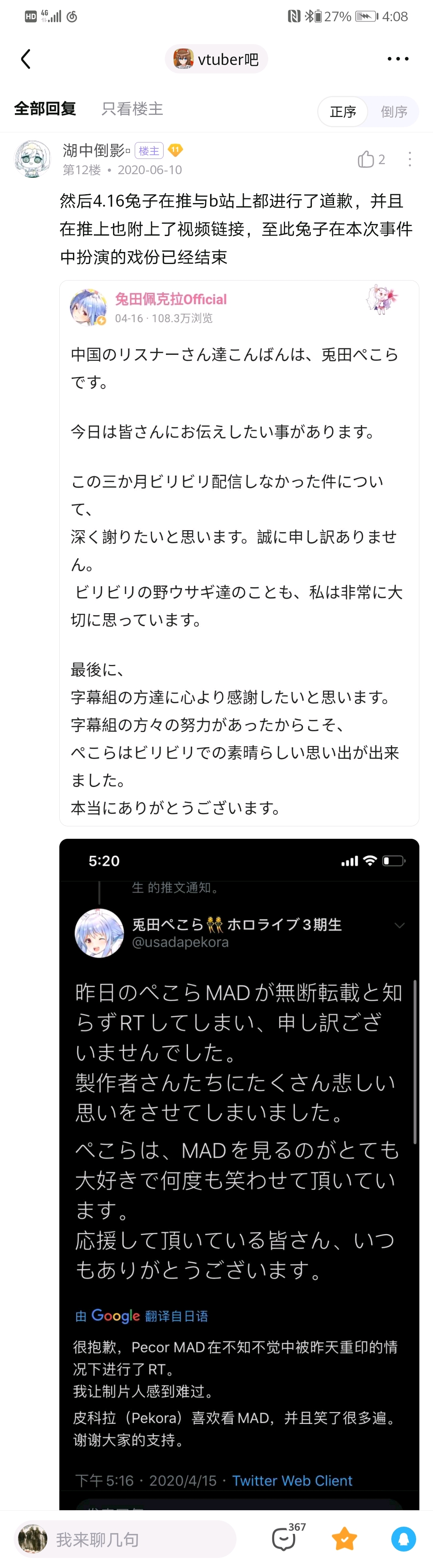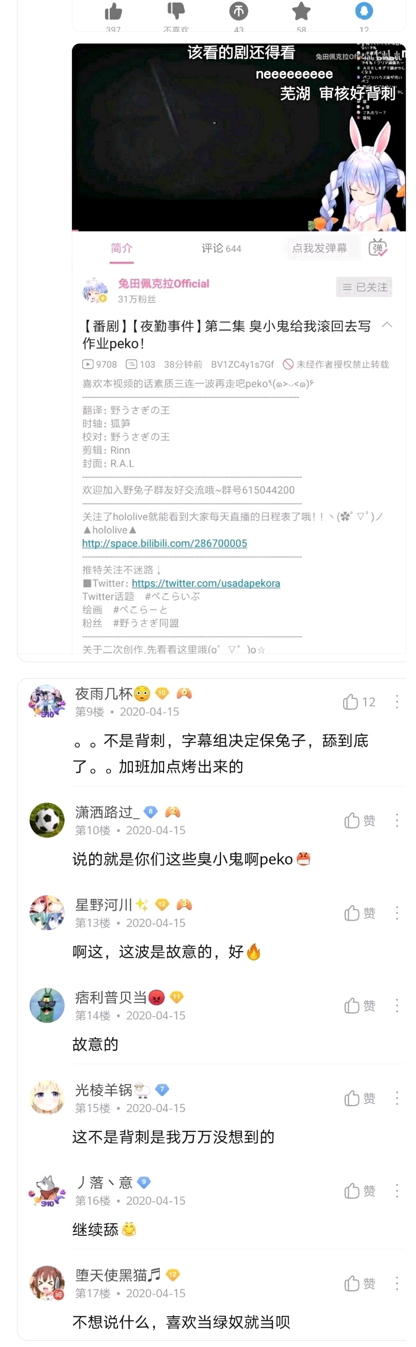 终于到兔田这事了,相关方有兔田本人、运营、兔组、星宝以及诸位吧友,我得理一理,兔田此事本身的梁木被栖宝拔得差不多了,故不再多讲,打算侧重点放在吧里😅