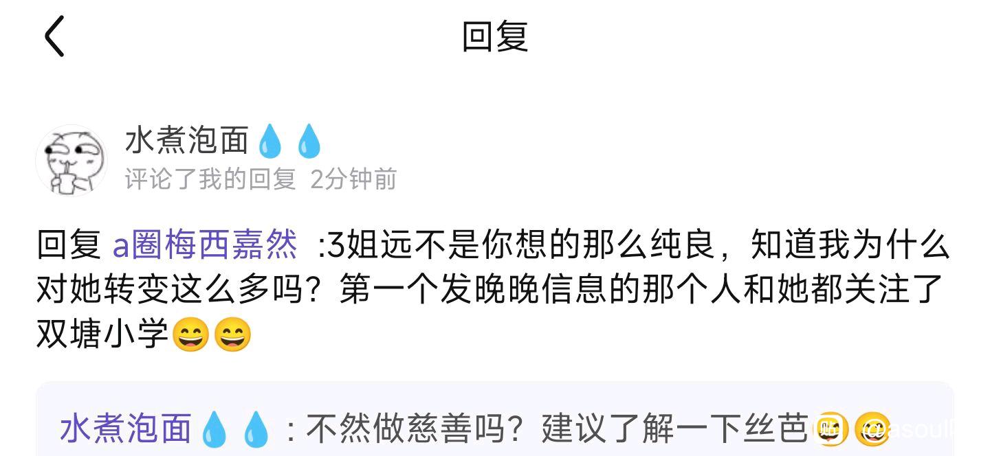 爱战斗的紫炎 水煮泡面💧💧回复:几年前的事情了记不太清楚,那会a8太魔怔太压抑了,我说三姐是有预谋想要炸团之类的话,这个双塘小学当时是有个节奏说是开到三姐了,当然后来证明是假的。然后当时我觉得三姐就是刻意炸团的还有人操纵之类的吧。
