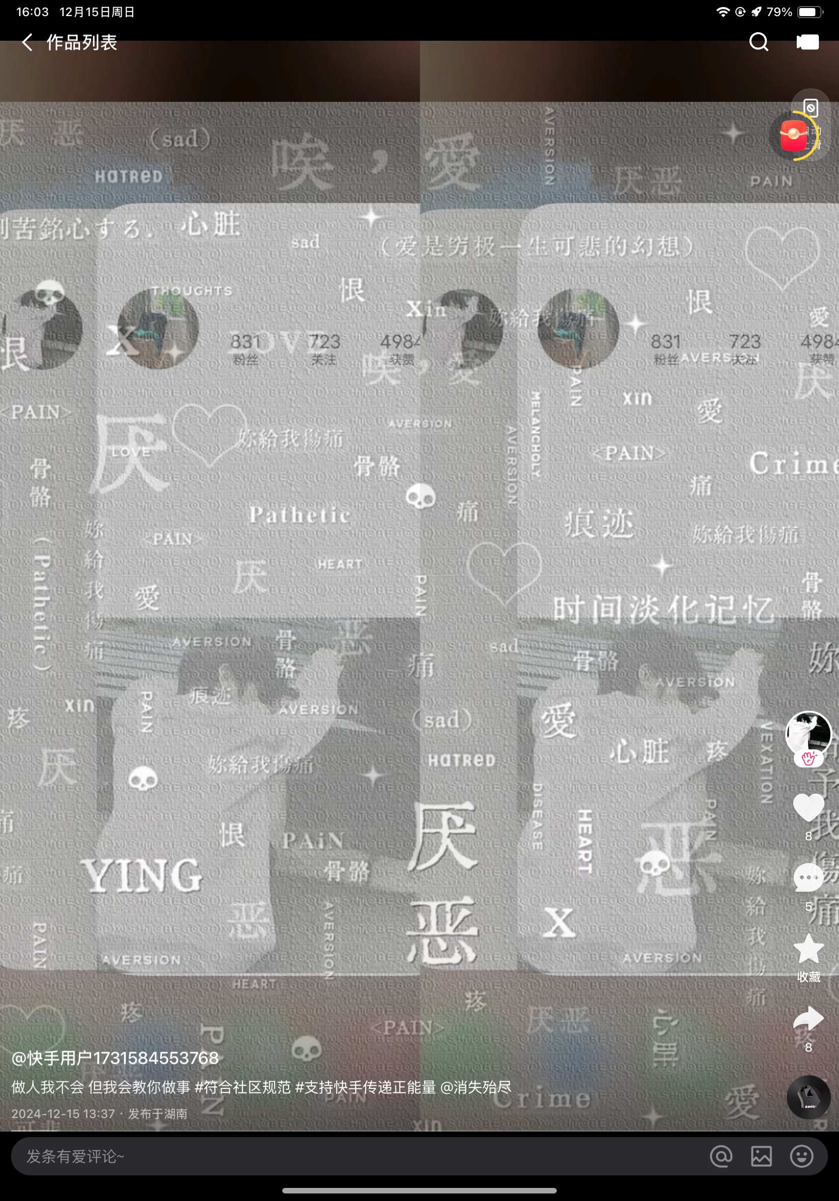 敬的贴吧工作人员您好!我要举报一名快手不符合社区规范用户