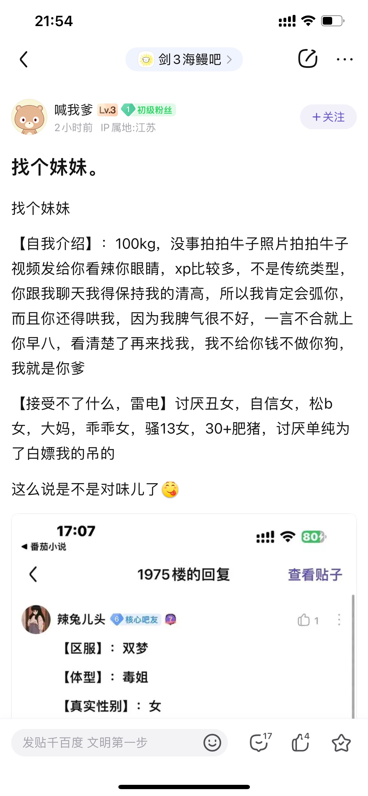 一拳打爆天策33 阳猥男破大防急死啦每天在贴吧辱骂攻击吧友,人肉威胁,开帖辱骂,怎么举报没用呢?