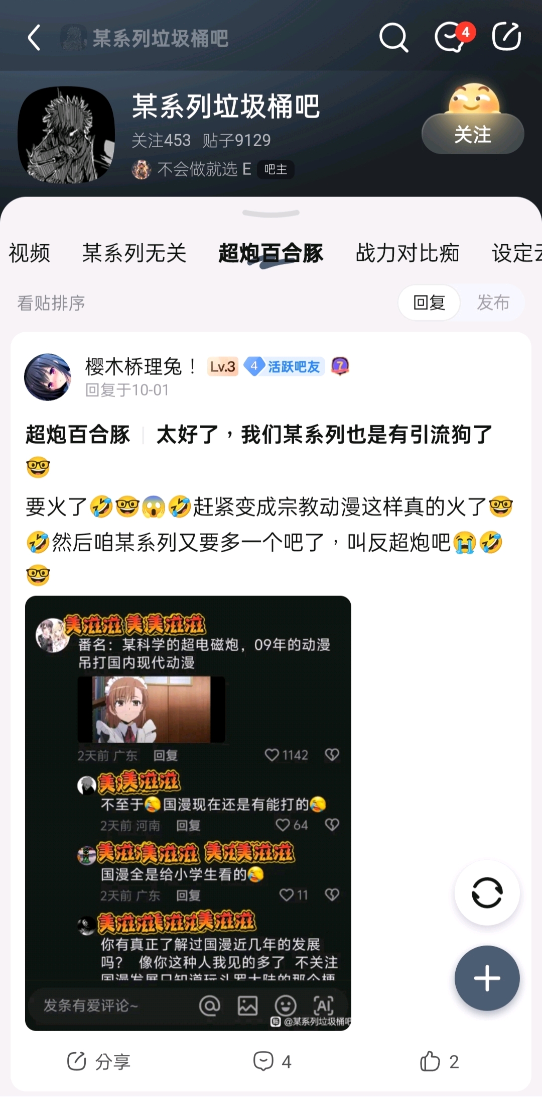 举报新国产动画吧,大量造谣撕比贴,角色黑图黑贴,p鬼图,氛围极其恶劣