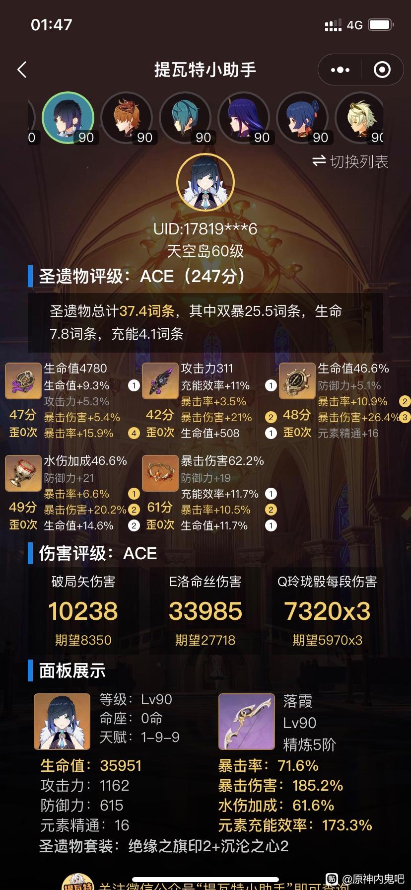7分0几秒打满 神子6+1面板 80 210 无雷伤杯 10 13 13 草神 e 10