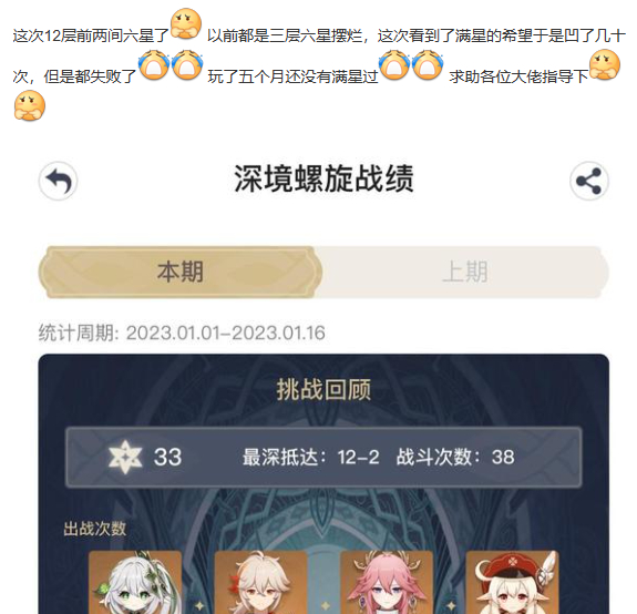 桃邀 贴吧用户_0QV24CC回复:我当时纯娱乐性通关,我刚抽的雷神,最开始只是想看看雷夜上半如何。。然后上期我用的神子草神万叶心海打的上半,下半融甘,说实话融甘下半有点痛苦。。神子草神钟离心海打下简直无脑,我感觉唯一需要技术的也就草神给狗拍照了