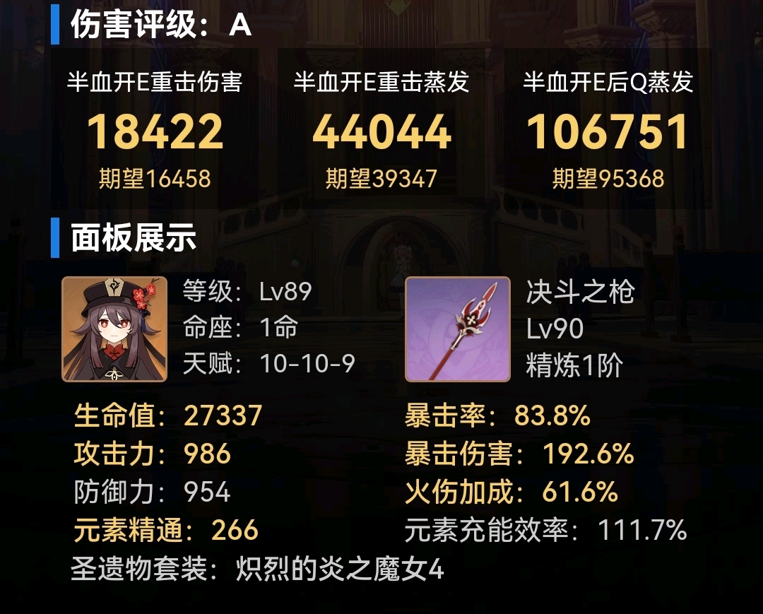 一年前入坑的时候,刚玩一个月胡桃就复课了,对胡桃没感觉,但是大世界刮痧很难受,听大家都说她很强,就抽了,然后伤害确实有了手感稀烂,体验一言难尽,到现在还是80级没突破,一年多没用了