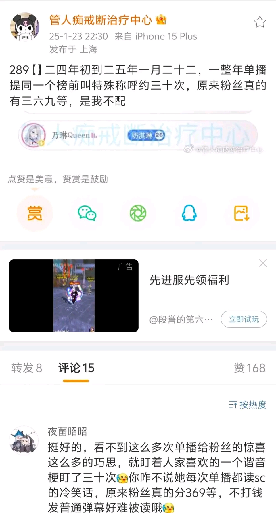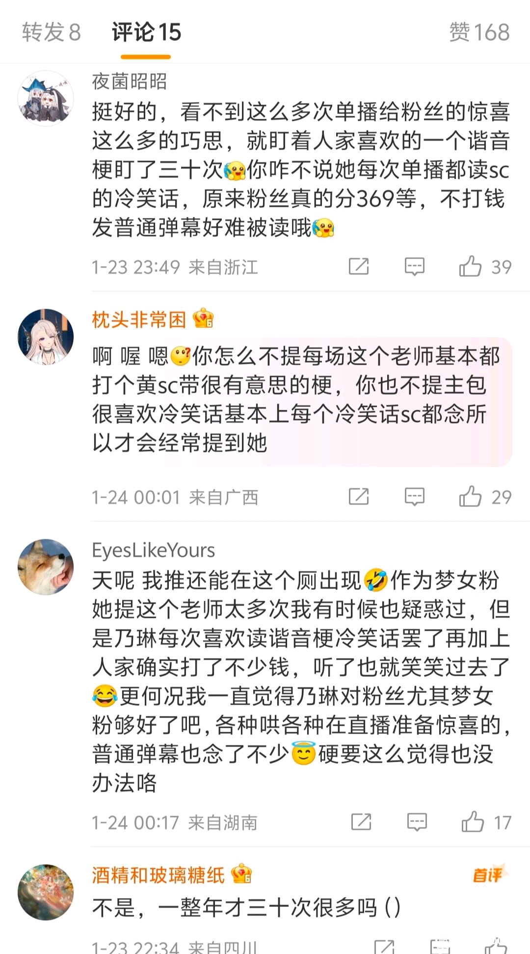 天呢 我推还能在这个厕出现🤣作为梦女粉 她提这个老师太多次我有时候也疑惑过,但是乃琳每次喜欢读谐音梗冷笑话罢了再加上人家确实打了不少钱,听了也就笑笑过去了😂更何况我一直觉得乃琳对粉丝尤其梦女粉够好了吧,各种哄各种在直播准备惊喜的,普通弹幕也念了不少😇硬要这么觉得也没办法咯