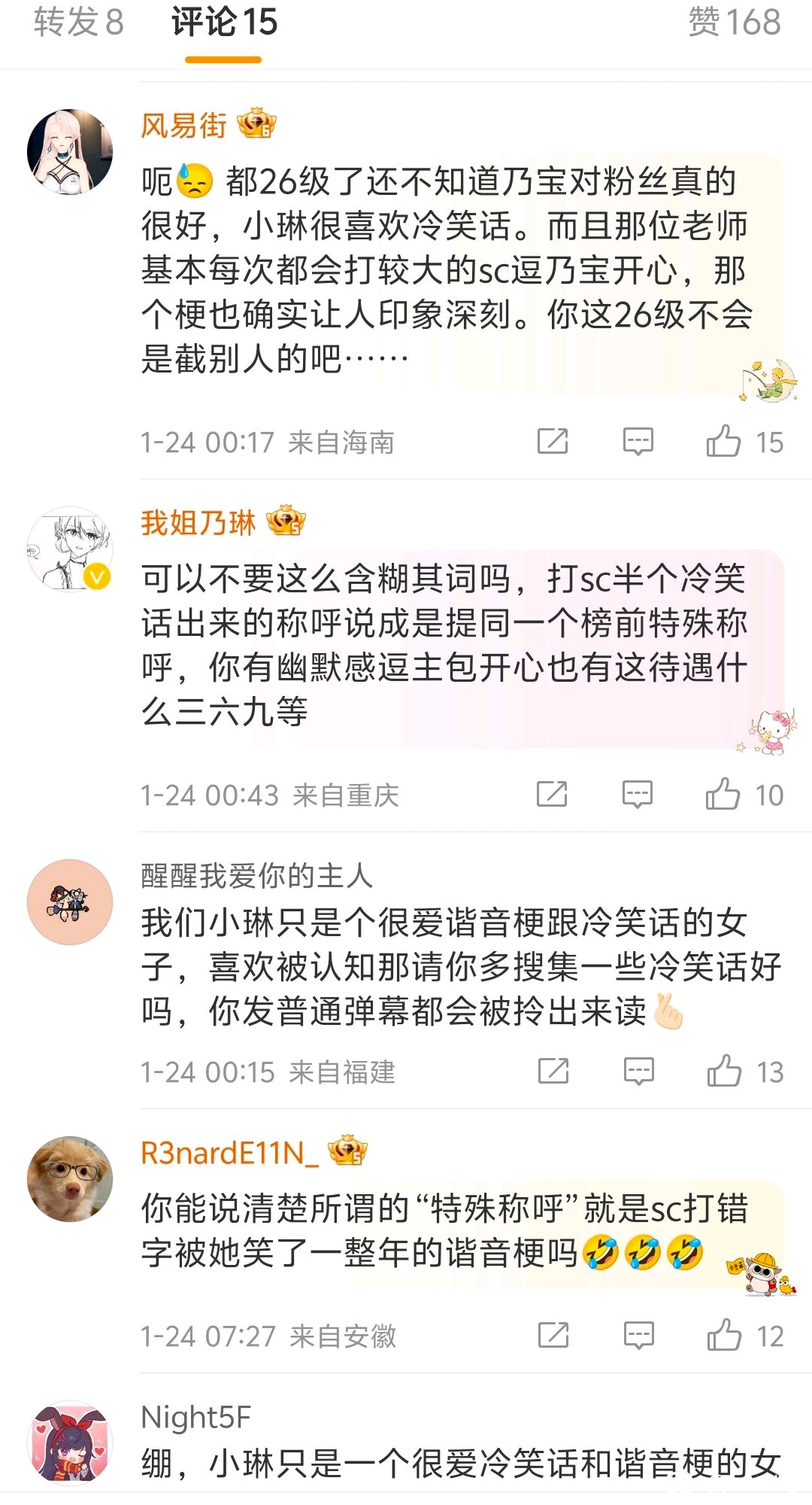 我觉得吧,琳确实是喜欢这些谐音sc毕竟还打钱了念念正常,但是琳还给它取外号 几乎次次单播和偶尔团播都会提到,确实是有点😅😅😅