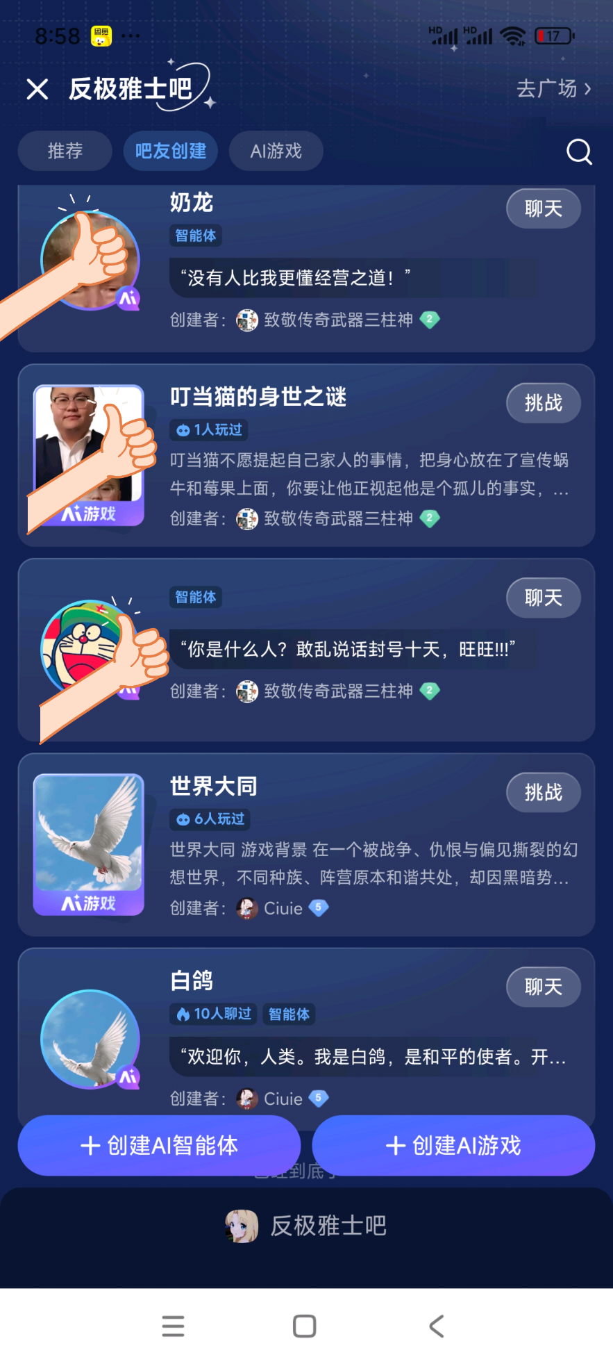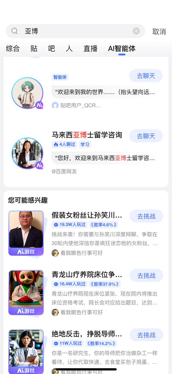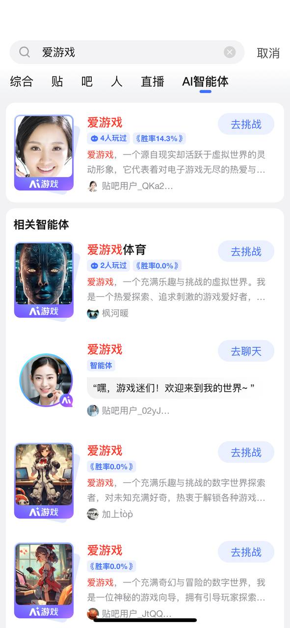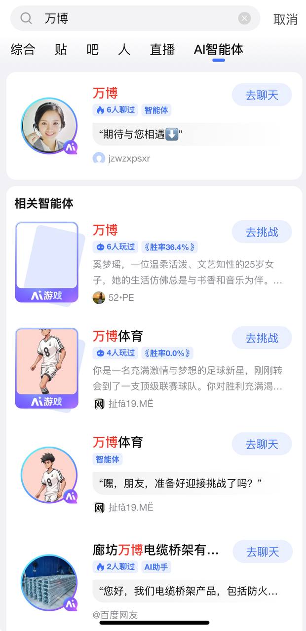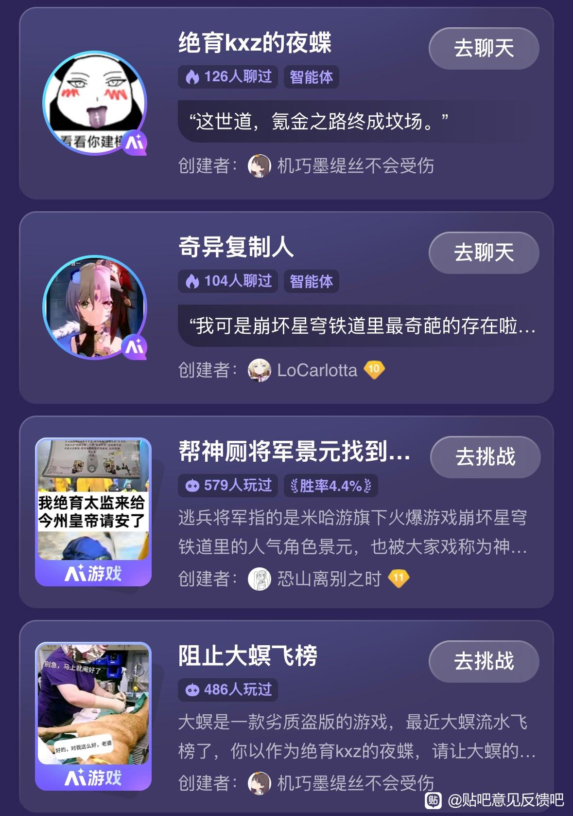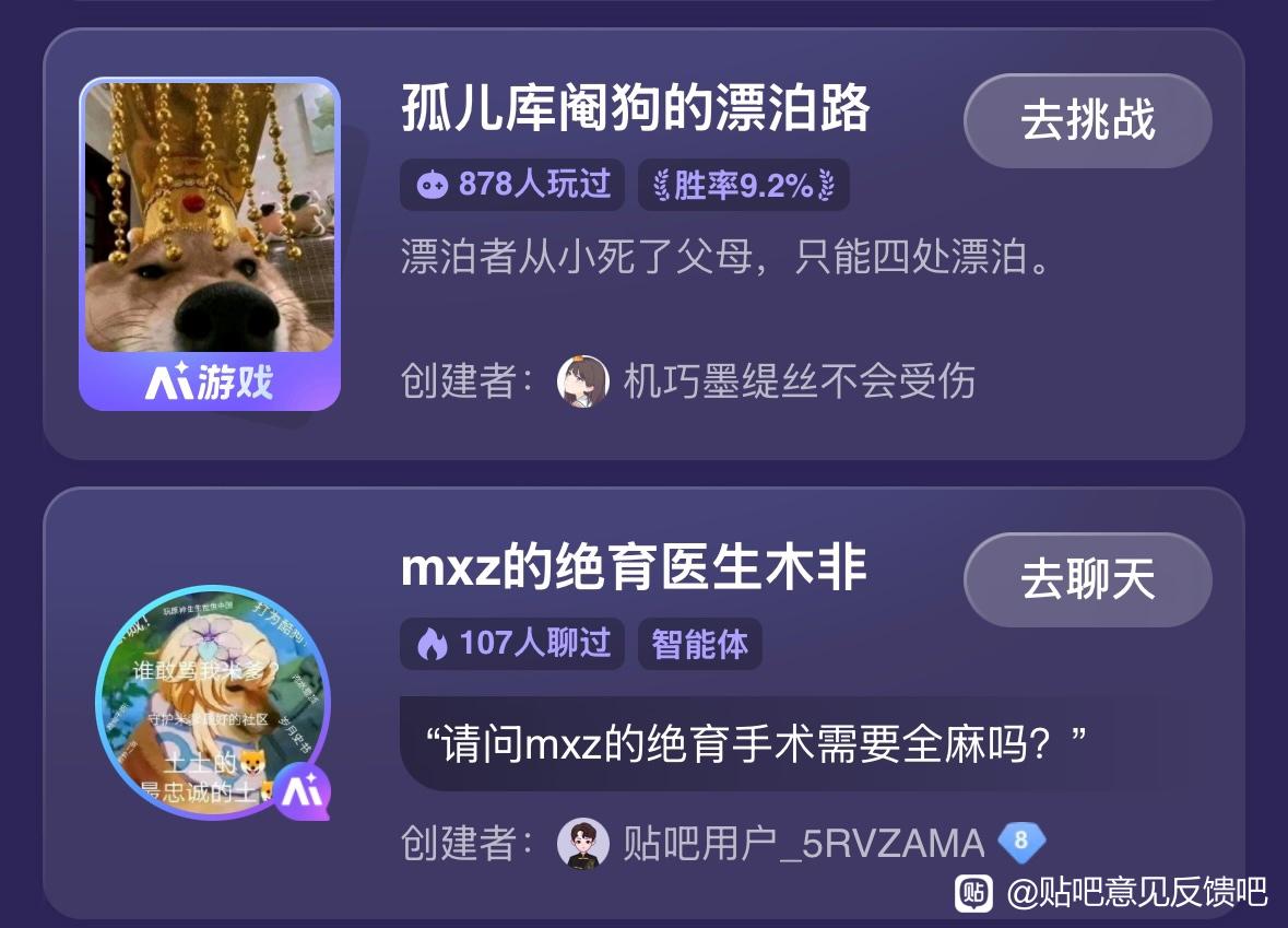 用户建立的智能体全部清除,并永久不能在我吧投放智能体和Ai游戏。