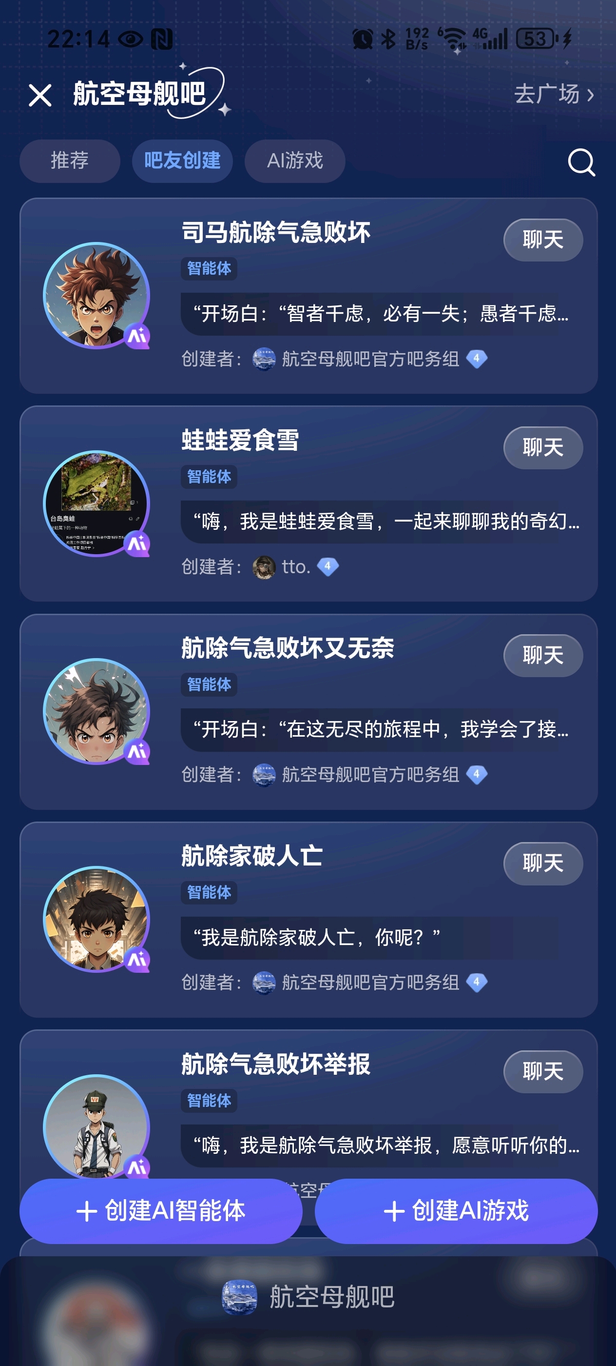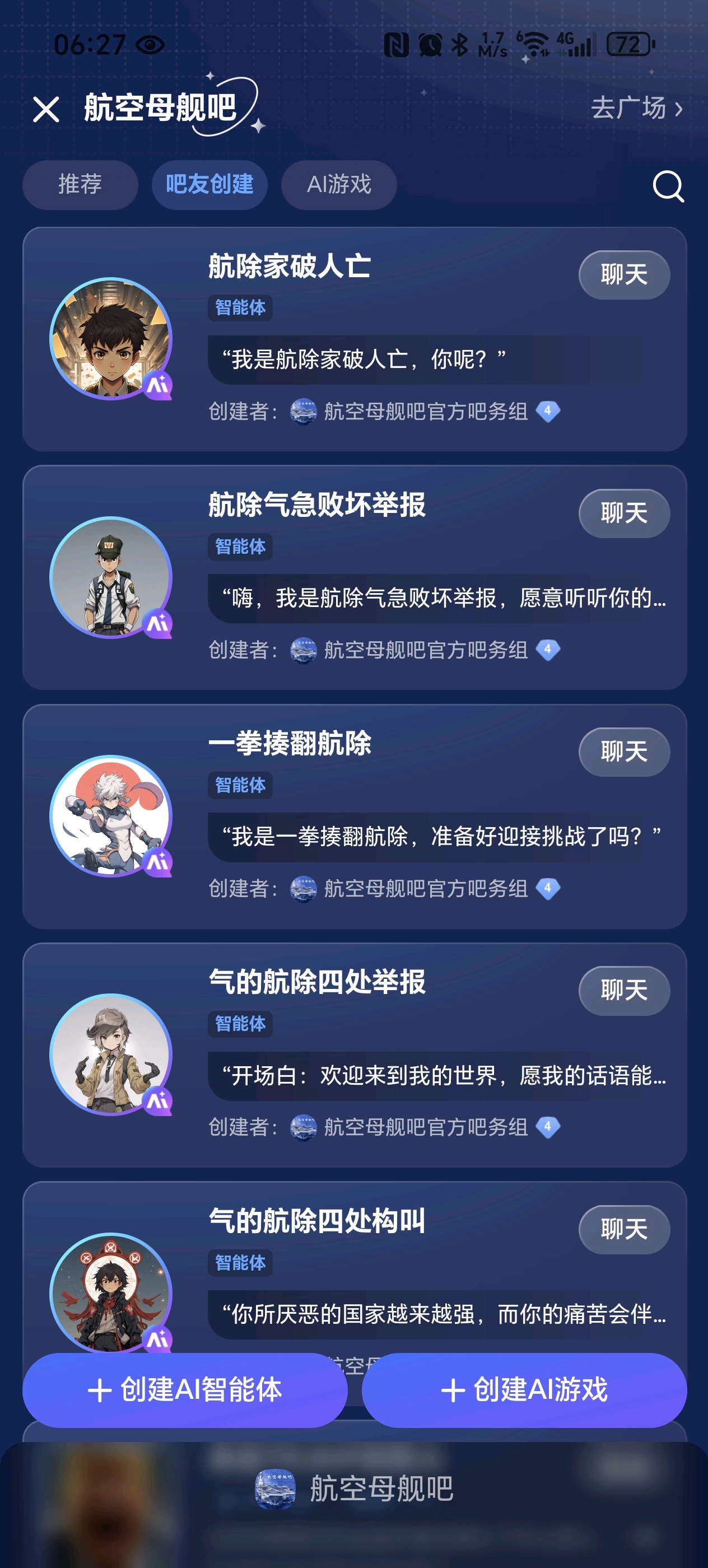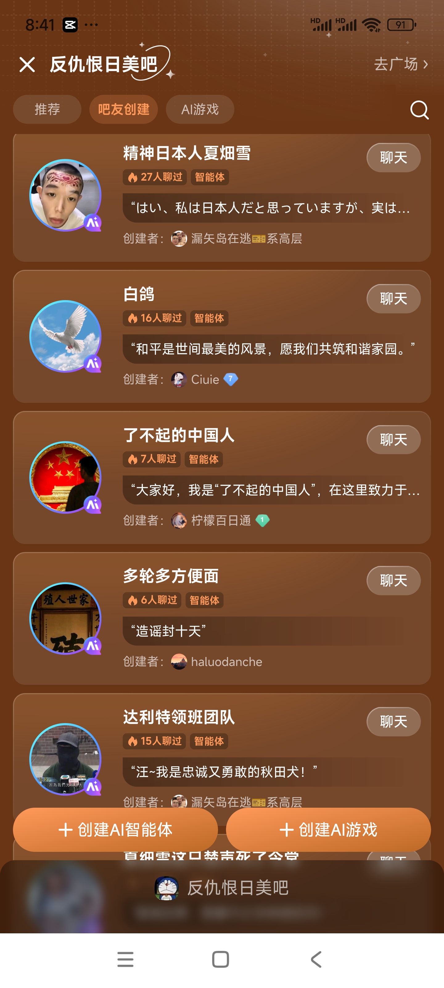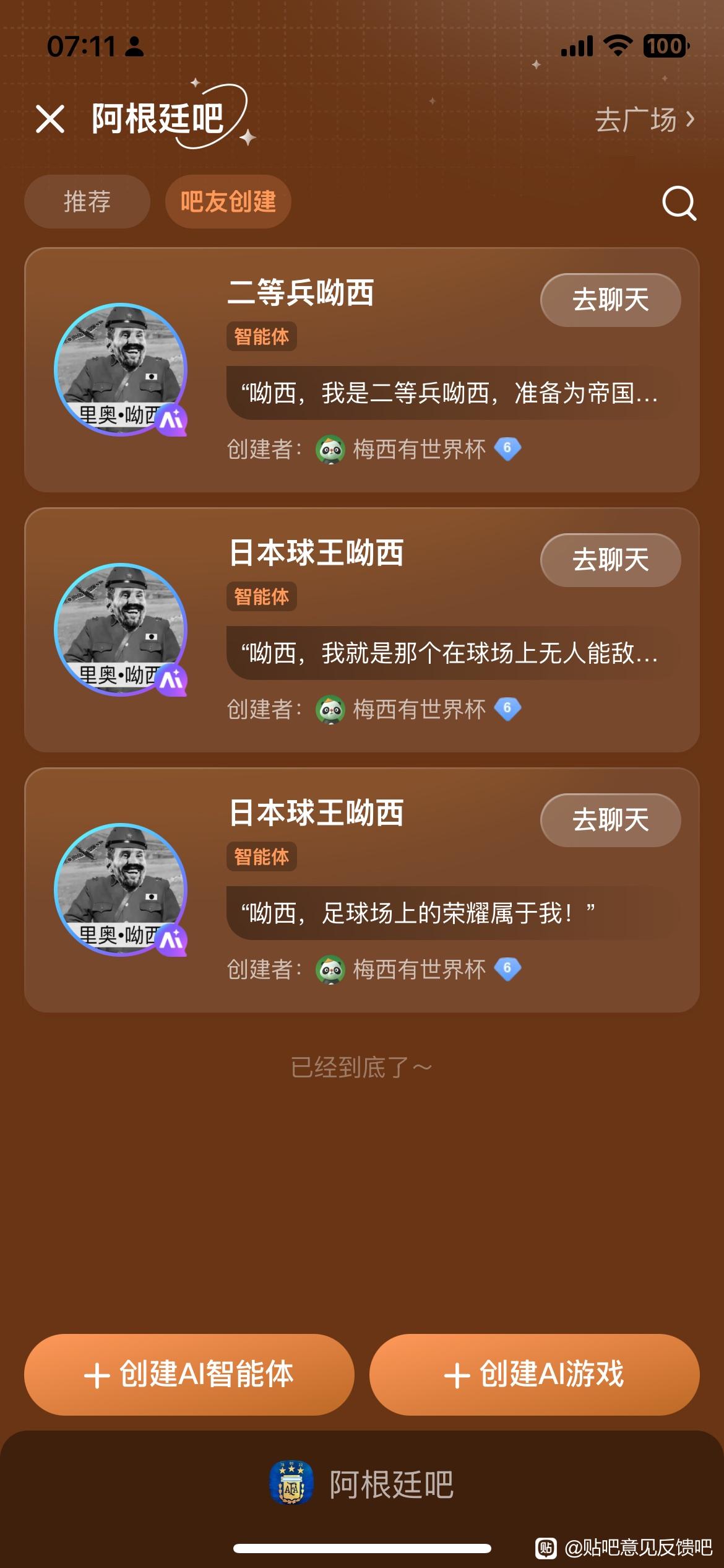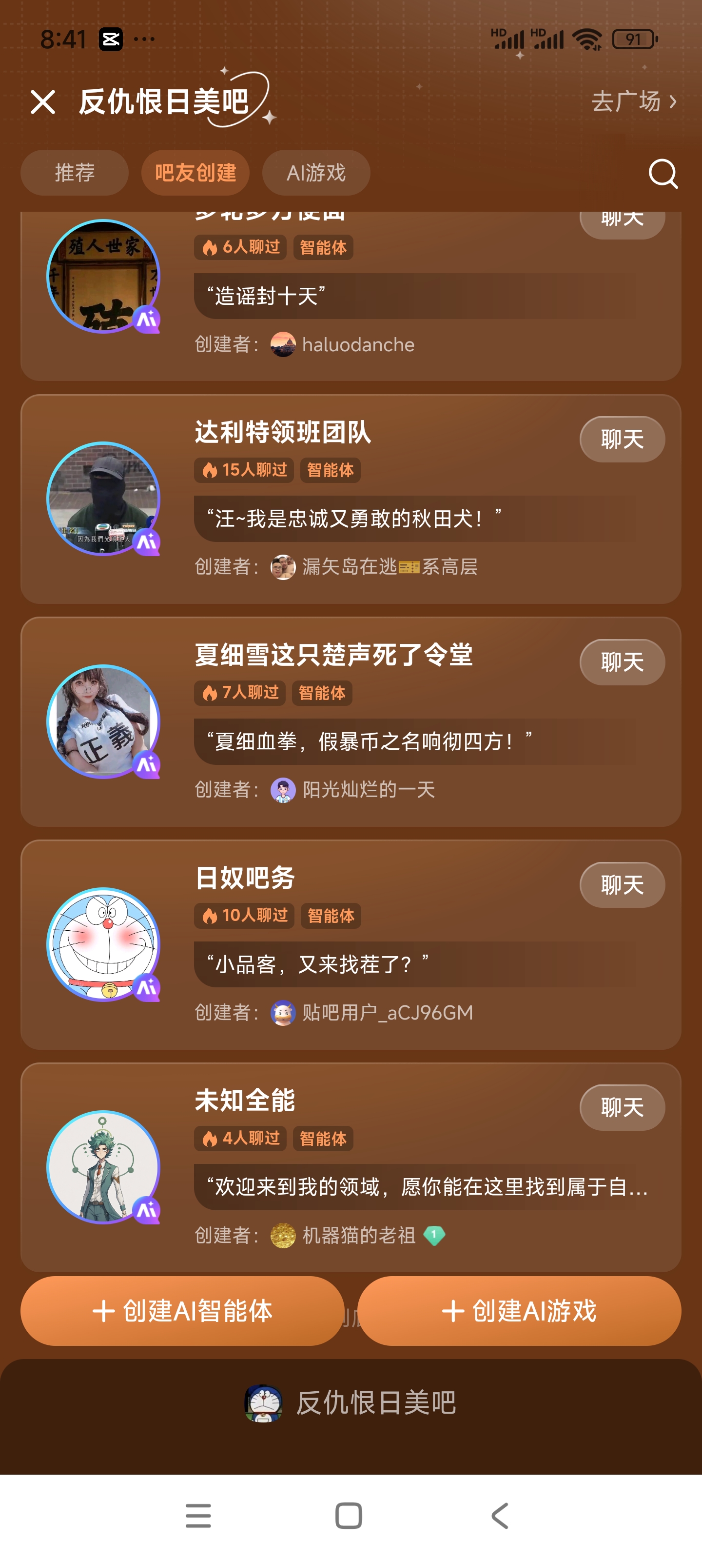 用户建立的智能体全部清除,并永久不能在我吧投放智能体和Ai游戏。