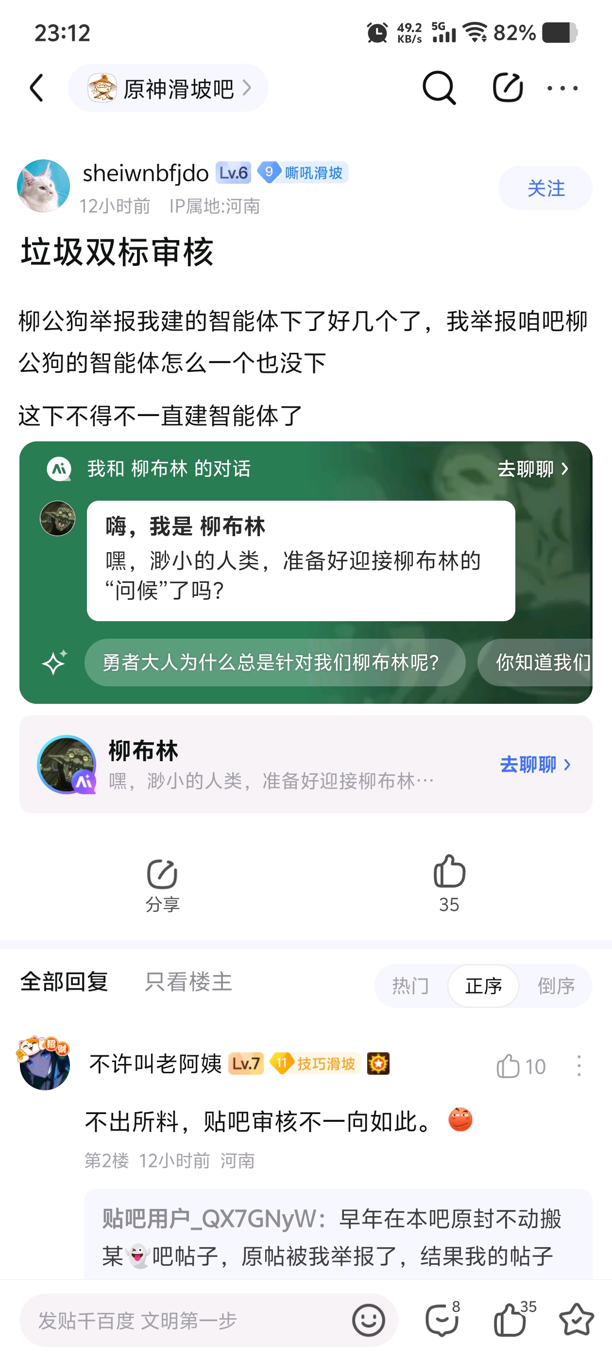 理由:频繁创建人身攻击的违规智能体,利用谐音骂人,造谣抹黑游戏角色,辱骂贴吧用户,p令人不适的图片。