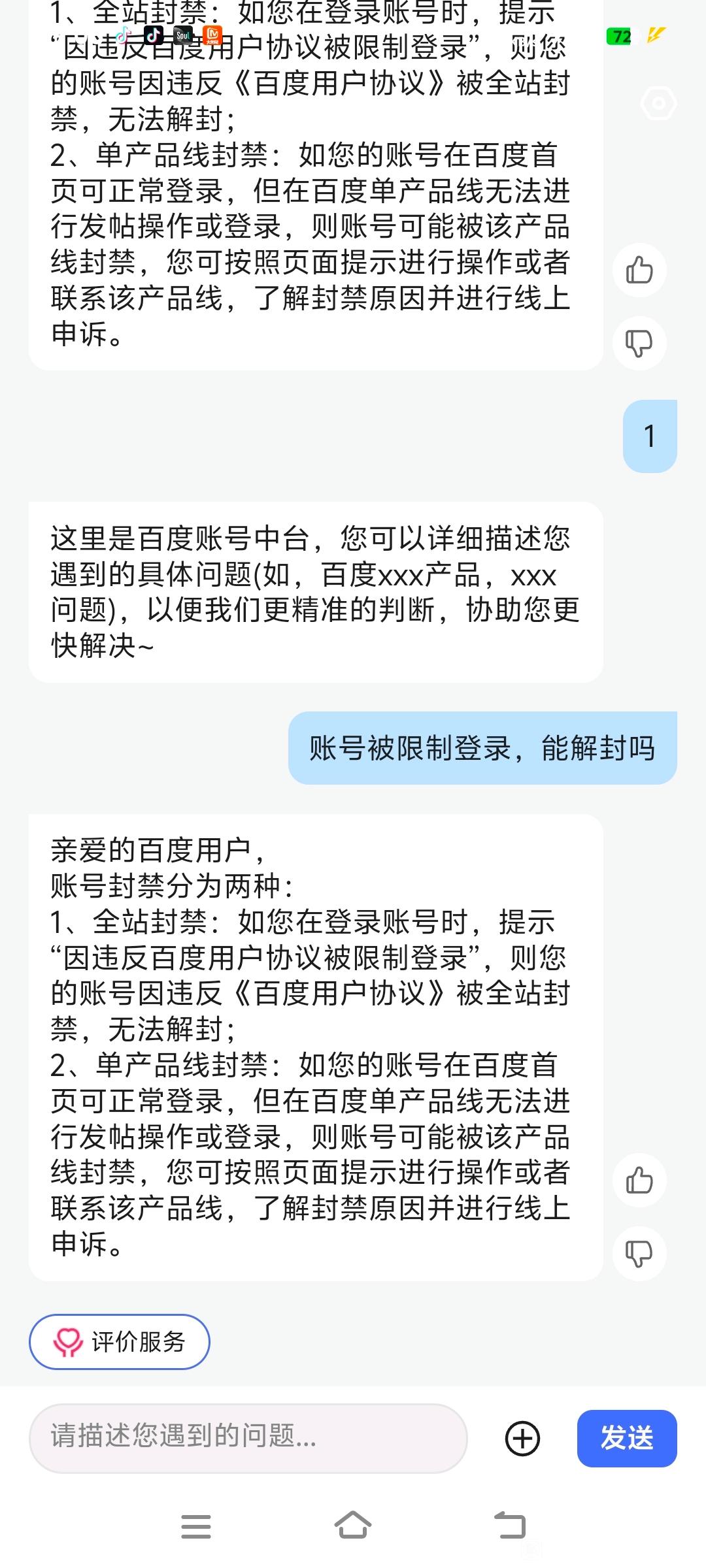 贴吧意见反馈吧 两个账号都被限制登录了?tid:97074315462025/05/12 19:21:2971669 4 0楼主:神君·杜姆最后回复:幽斓月2026/01/20 21:07:441楼pid:1520852313912025/05/12 19:21:29神君·杜姆 楼主 1级 去年三月底永封两次,第三次限制登录前天又把我永封了,两次申述都没成功。直接限制登录了?究竟是什么原因?我又没有键z,又没黑国 怎么会这样子?就是关注一些国漫信息,发帖比较多,然后就是海贼王,漫威这类国外电影啥的2楼pid:1520852375982025/05/12 19:23:12神君·杜姆 楼主 1级 以前好像只永封,能解封,现在直接限制登录了3楼2条pid:1520854330072025/05/12 20:15:55我在山区有条路1级 今年开始 越来越垃圾了贴吧神君·杜姆 楼主 1级 去年三月底就限制登录一个,唉总是封号我在山区有条路 层主 1级 今年开始 就这样了。封号特别严重4楼pid:1520857705912025/05/12 21:44:10干了一晚饭不配🦋解释1级 6楼pid:1520877814072025/05/13 10:59:58神君·杜姆 楼主 1级 这样真不能解封了?7楼1条pid:1523163601652025/07/02 01:25:01miku抹茶慕斯◆夜刻雨◆1级 问问限制登录解除了吗,我一个号也被限制登录了神君·杜姆 楼主 1级 没有9楼pid:1531128813272026/01/20 21:07:44幽斓月1级 一样的情况,很难解