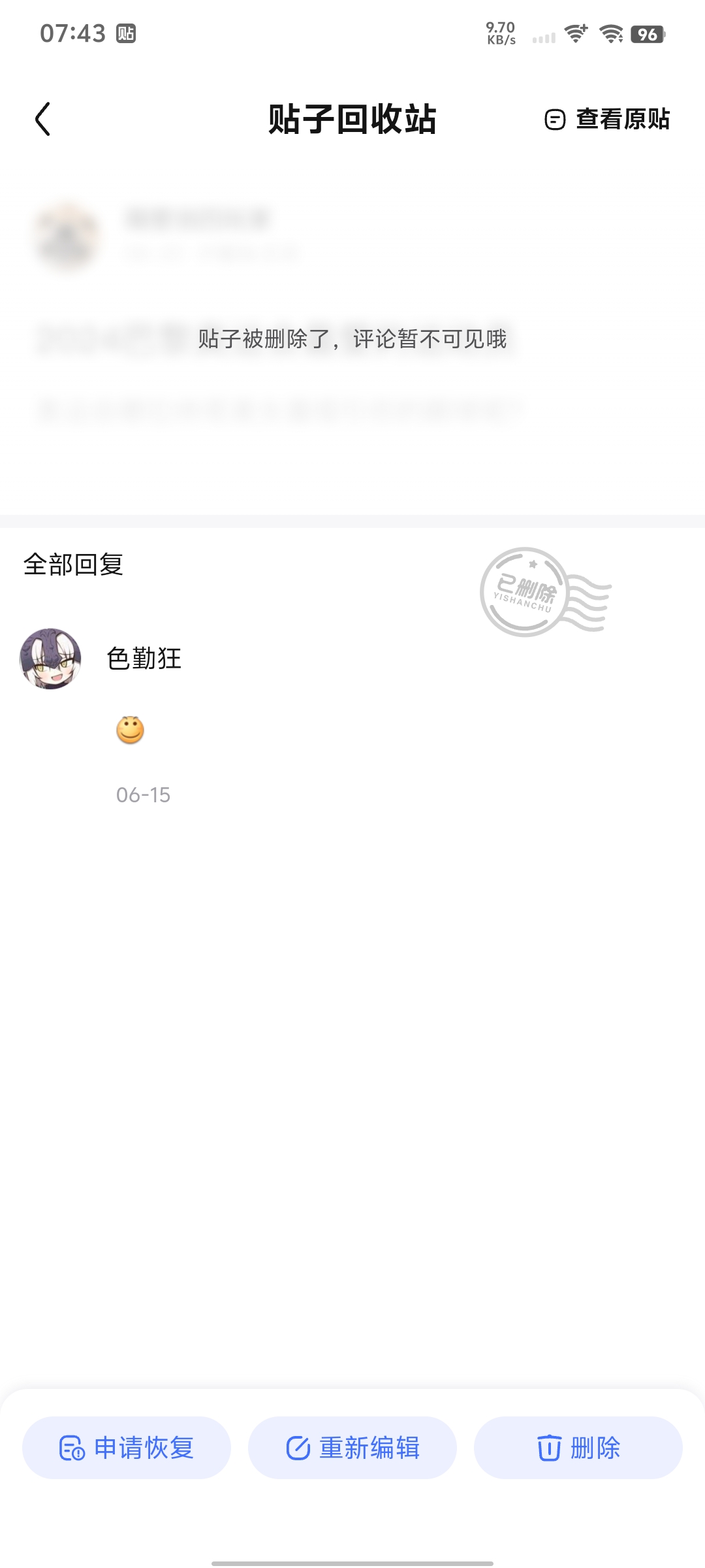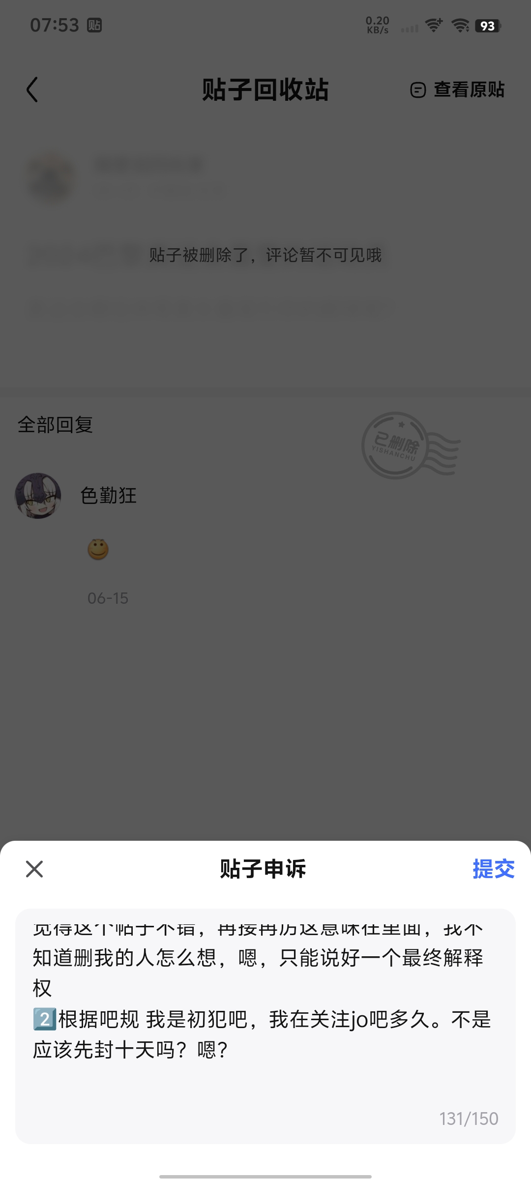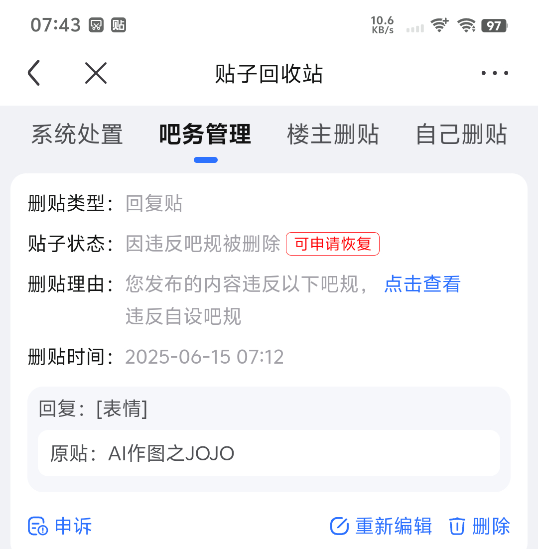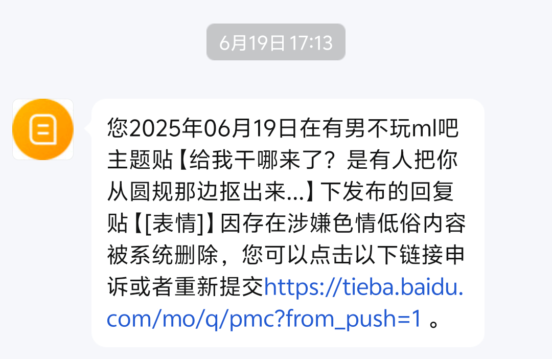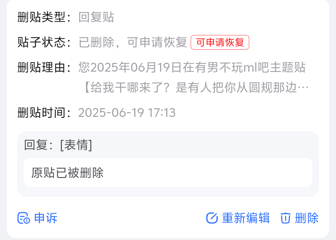 9楼pid:1522861683852025/06/25 08:24:43黄大苟色勤狂 楼主 5级 搞笑的是贴吧系统把这个表情以xx利益删除就算了,我知道他没脑子,不分青红皂白,你一个活人,以不清不楚的理由删除,居然还封禁是不是有点太内个了